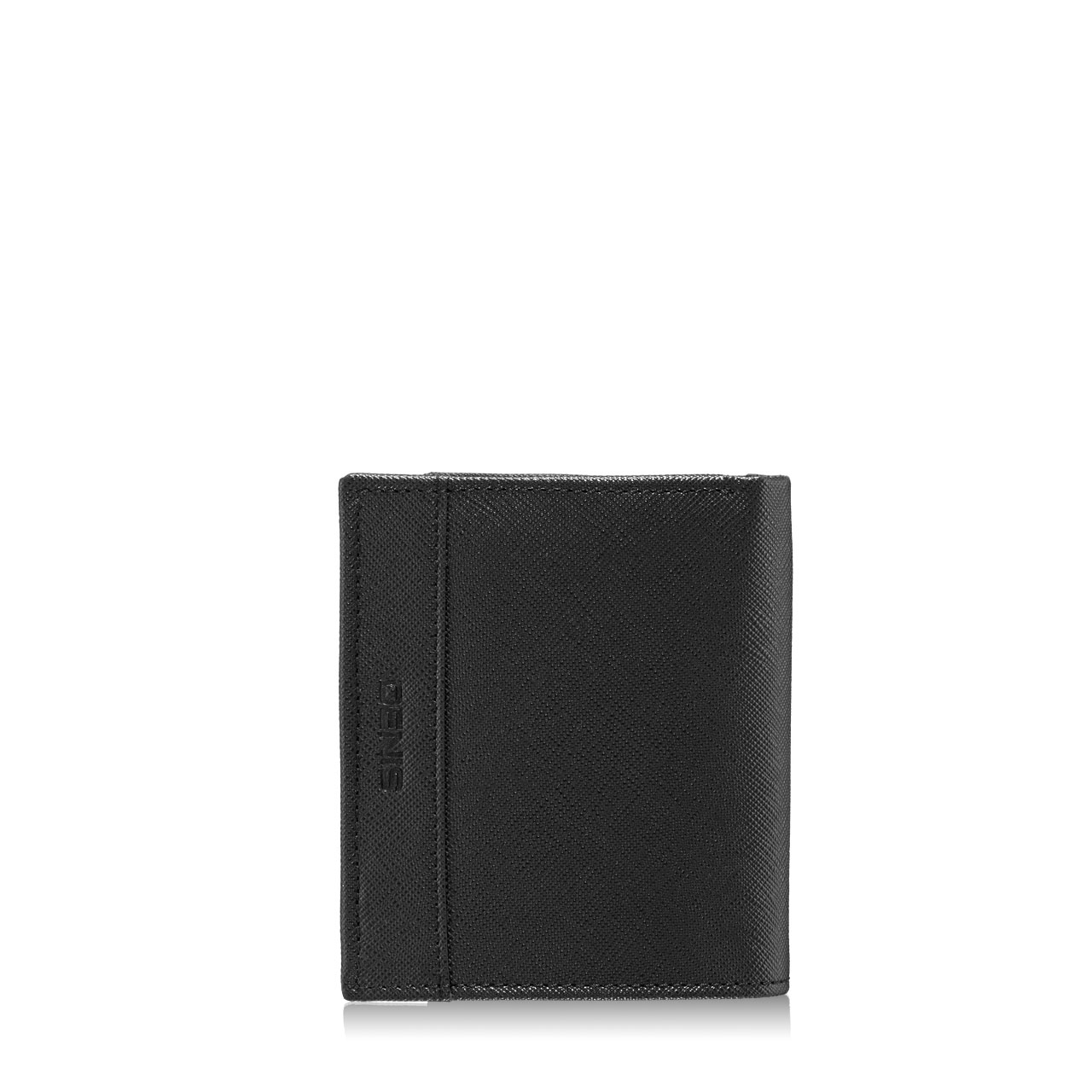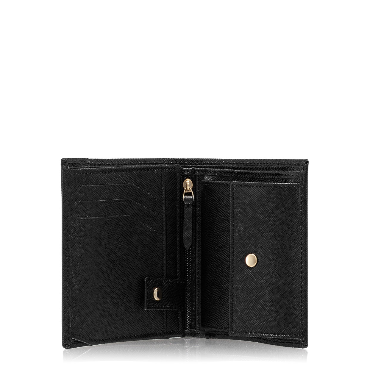 Portofel de barbati din piele naturala saffiano, personalizat cu logo-ul Denis. Contine un compartiment pentru depozitare bancnote, trei compartimente pentru depozitarea cardurilor si un buzunar pentru monezi.