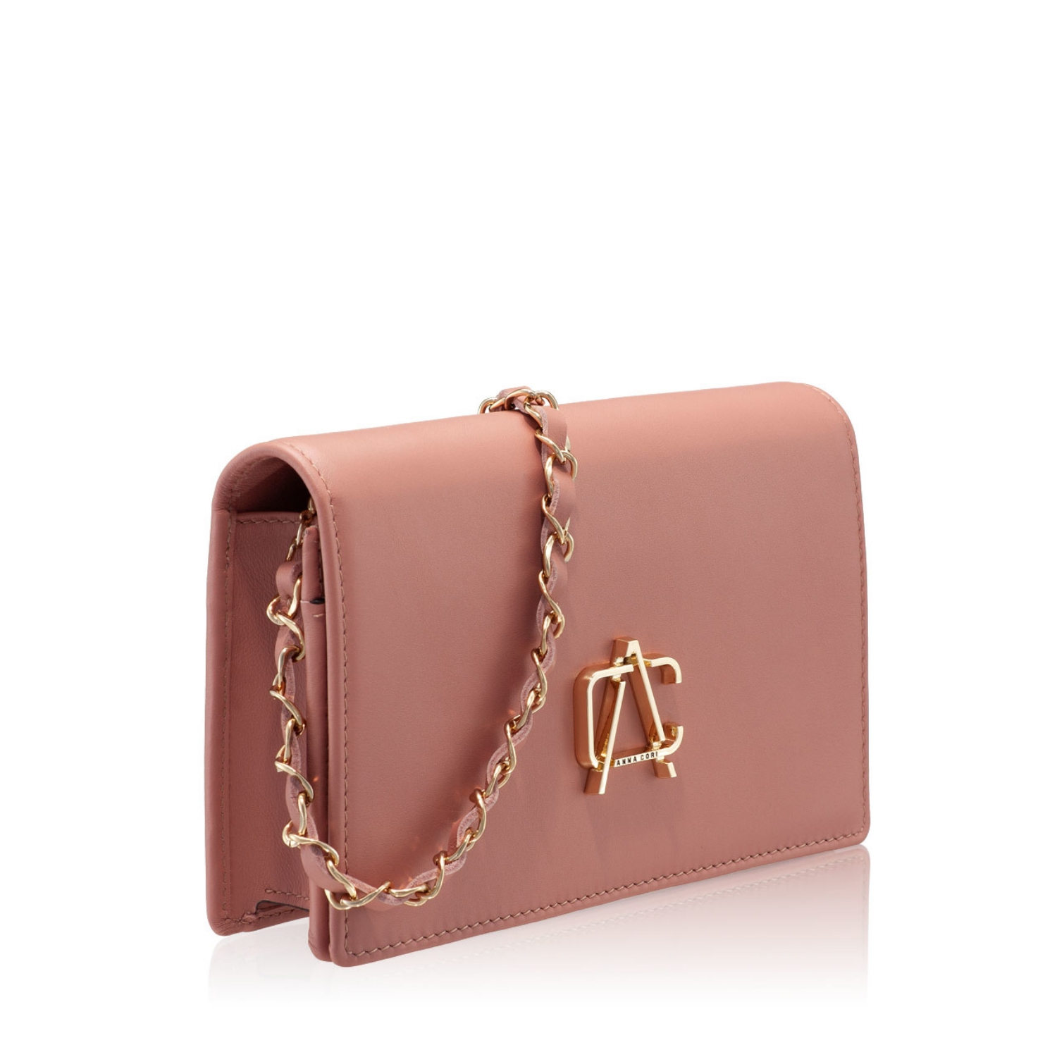 The ARNA envelope bag is an Icon Anna Cori model thanks to the elegance it shows and the diversity of shades in which it is found. It is complexly compartmentalized with two compartments, a central zippered pocket and 6 card holders. The Anna Cori monogram in gold metal manages to add an extra touch of elegance.