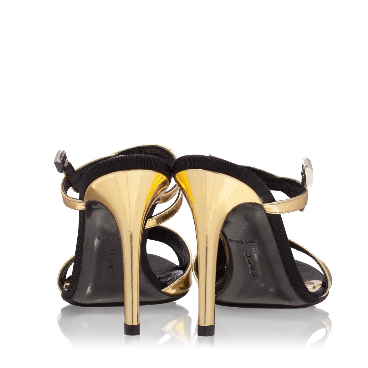 A chic sandal with two metallic leather straps, ideal for the smart summer outfits.