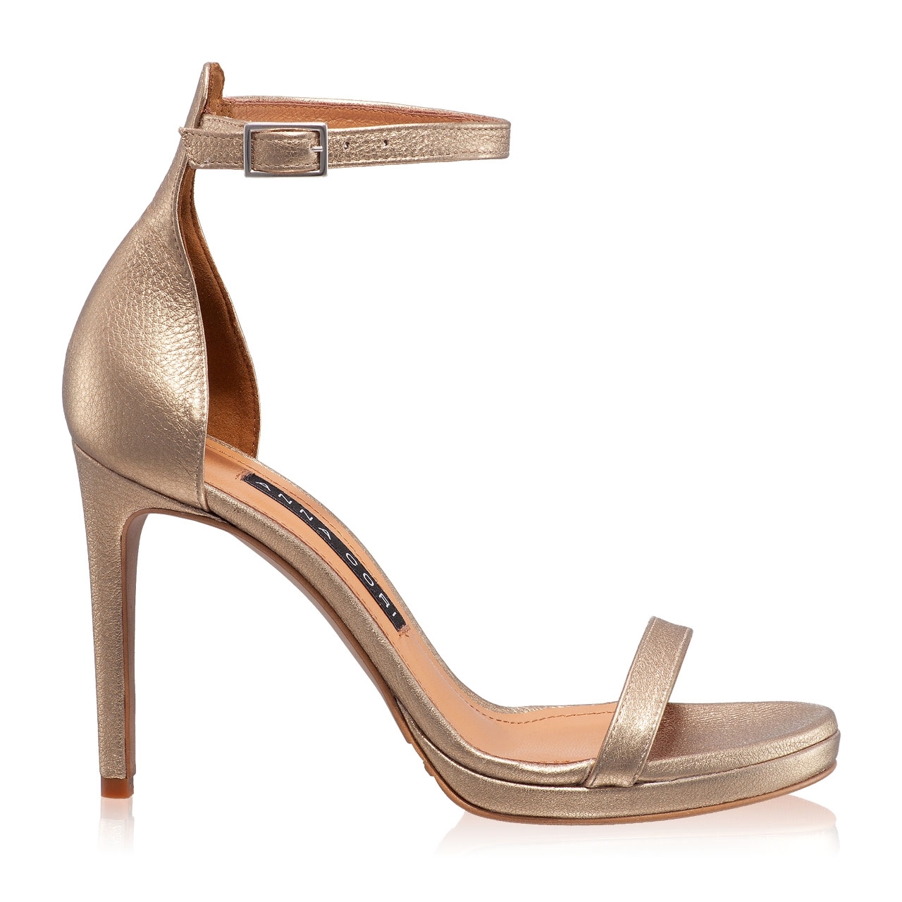 -laminated leather-leather lining-ankle strap with buckle closure-95mm heel