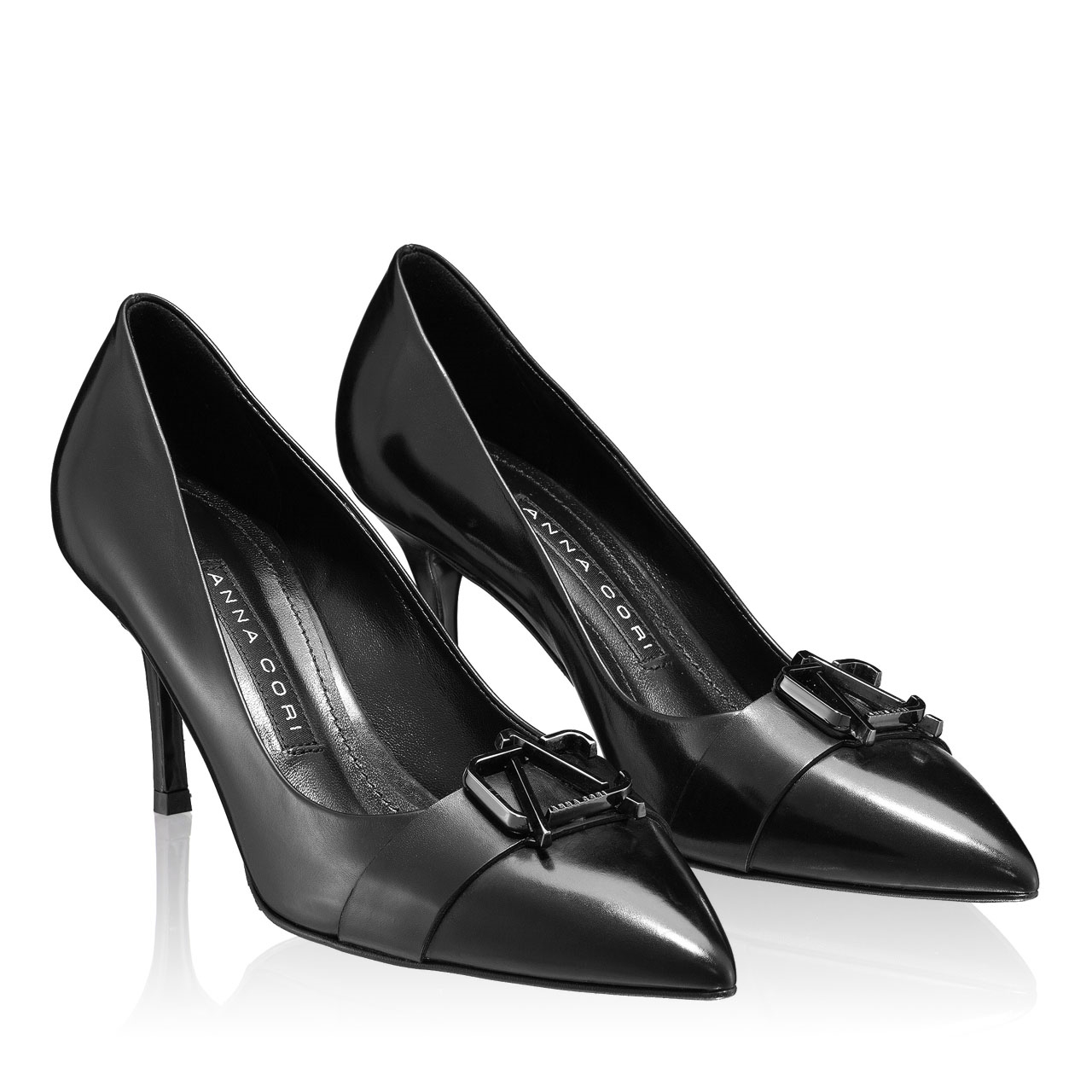 -natural leather-leather lining-Anna Cori monogram accessory-75mm heel