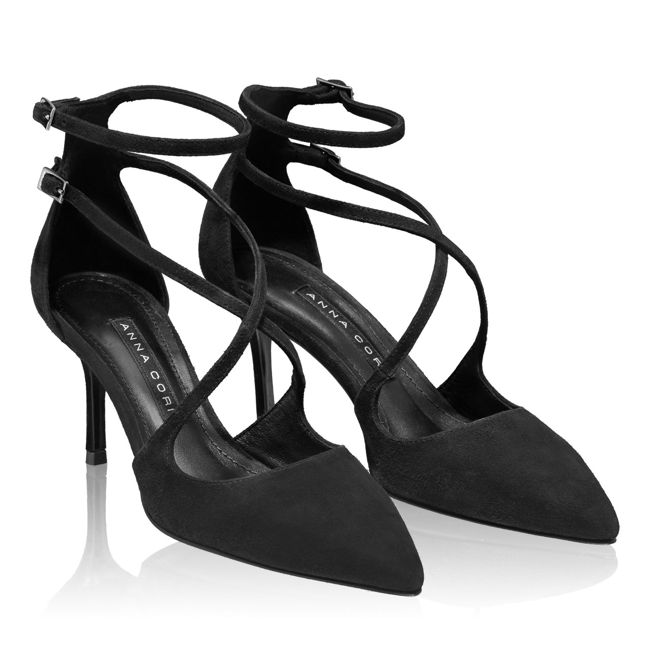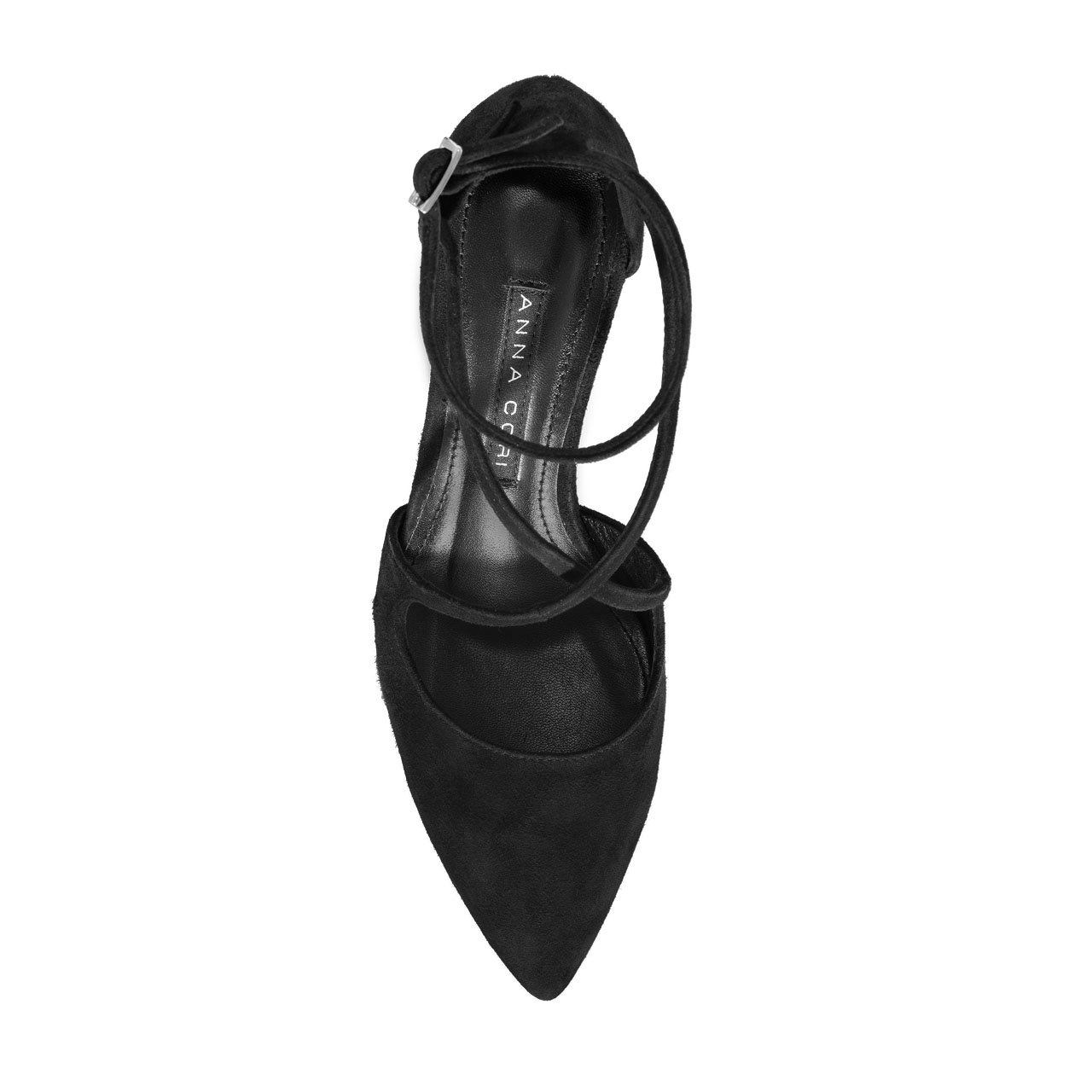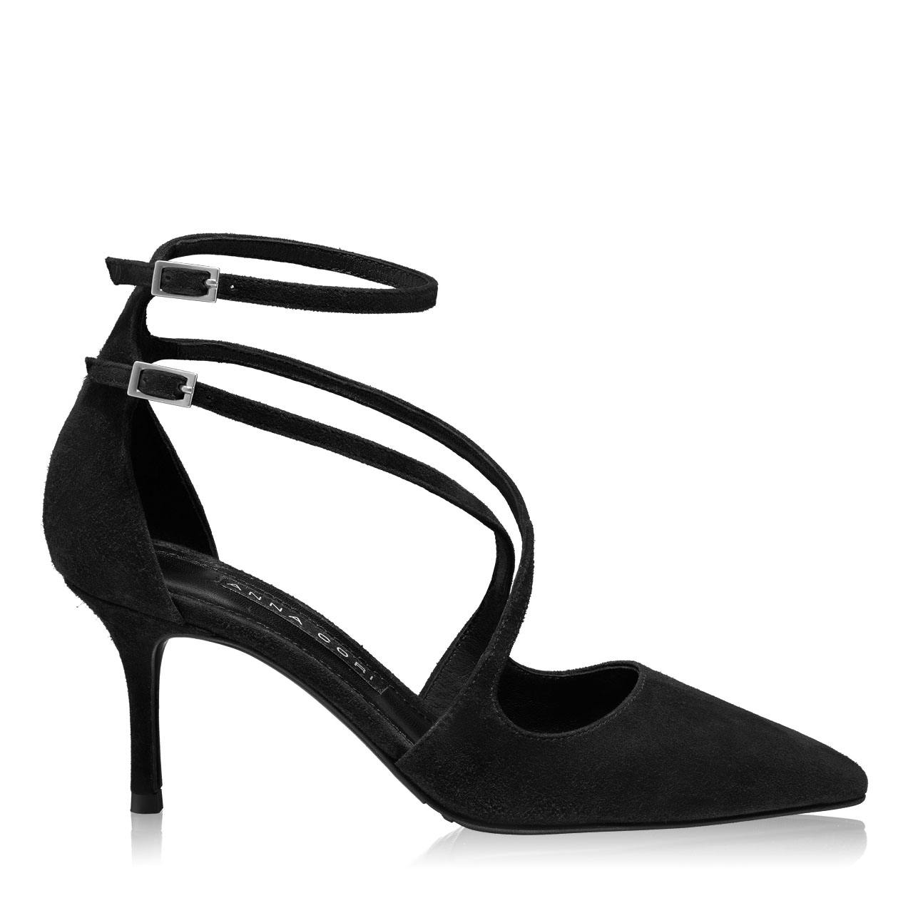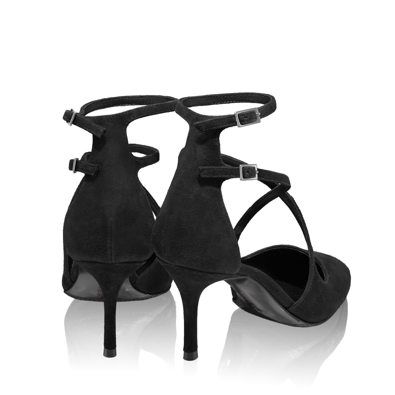-suede leather-leather lining-straps with buckle closure-75mm heel-silver color buckles