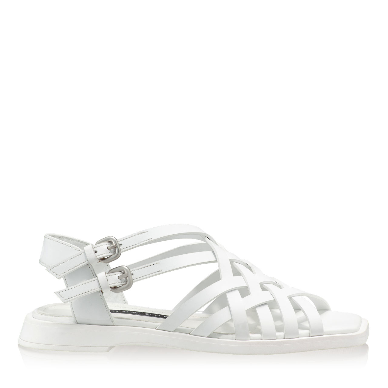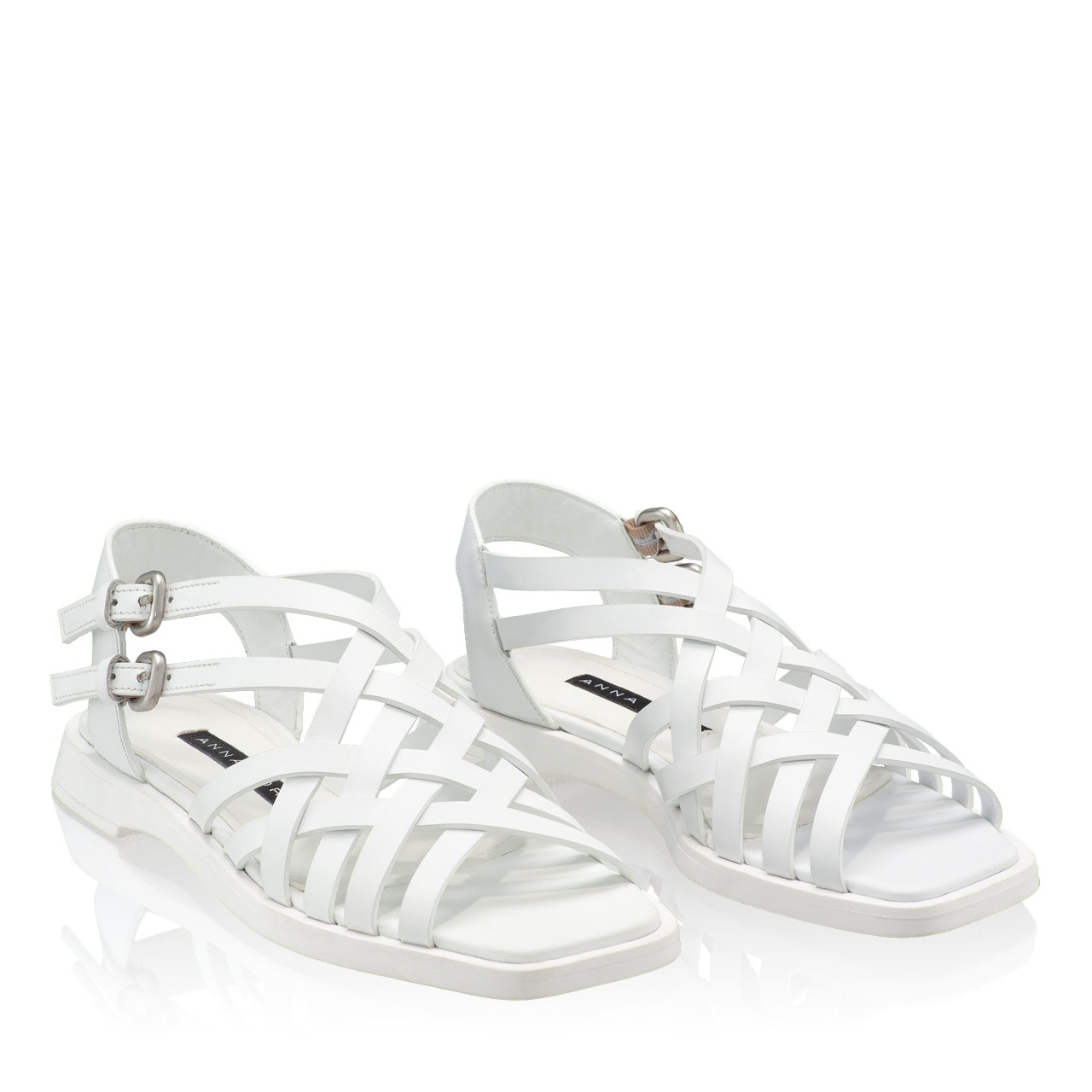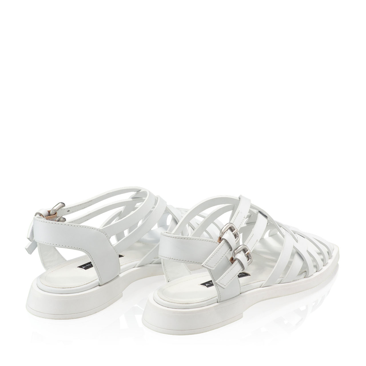 -natural leather-leather lining-straps details-buckle closure-silver color buckle-flat sole