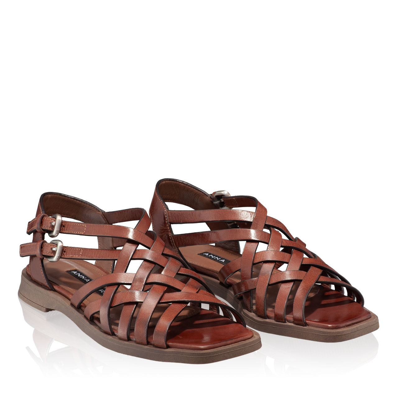 -natural leather-leather lining-straps details-buckle closure-silver color buckle-flat sole