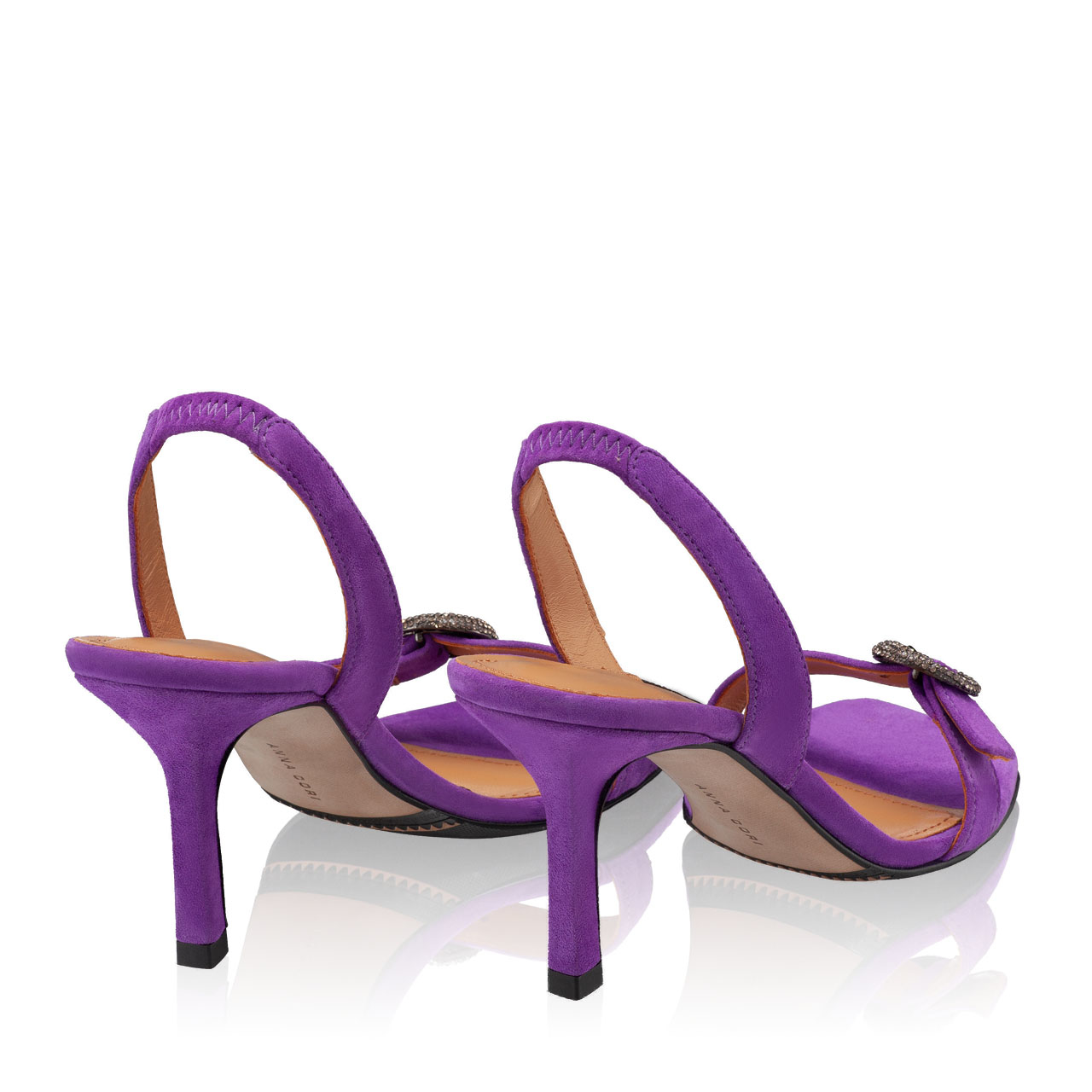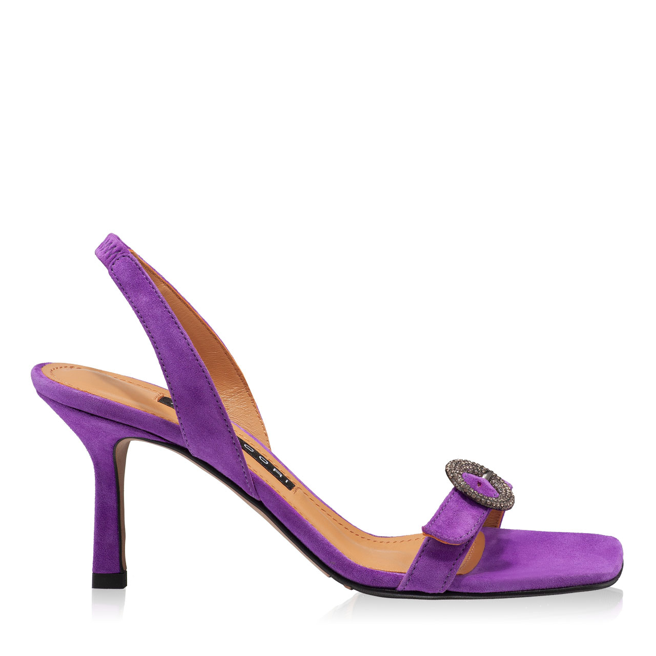 -suede leather-leather lining-75mm heel-elastic strap-silver color buckles