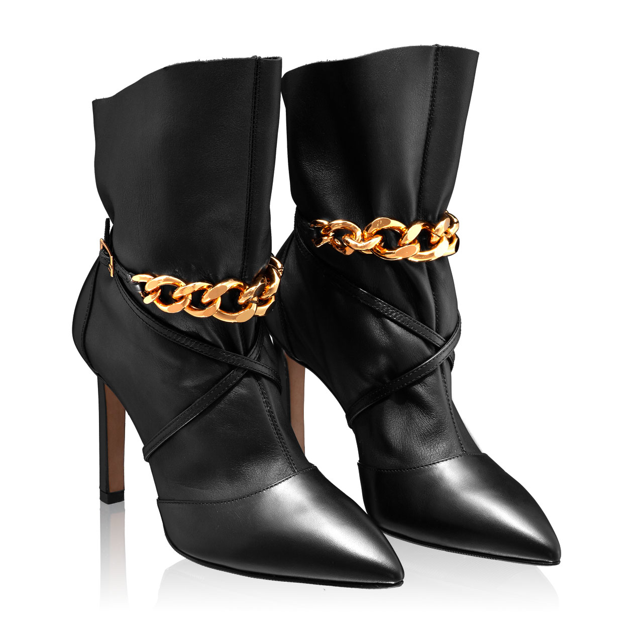 Mid-heel Leather Ankle Boots