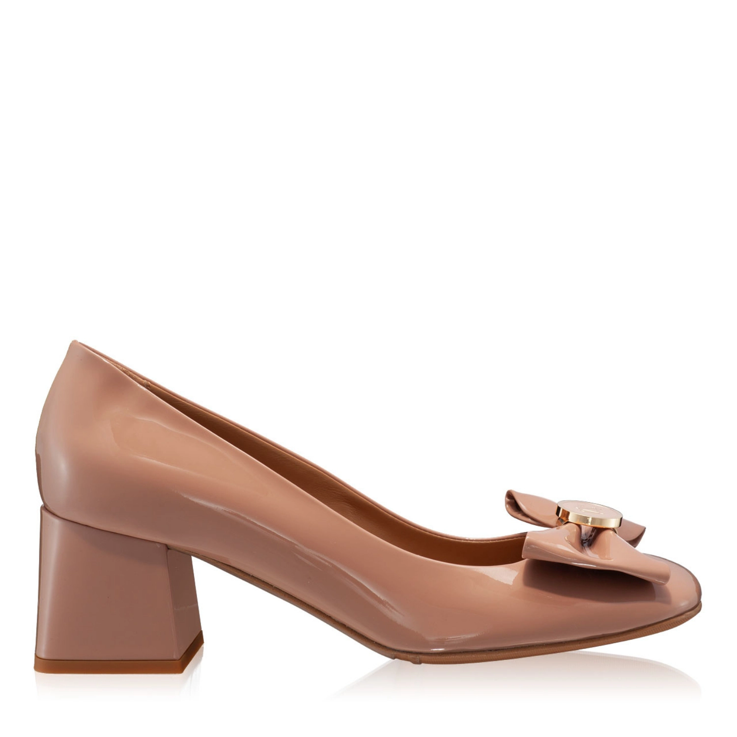 Classic in their simplicity, #LUCINDA shoes are made of natural calf leather and accessorized with a gold metal chain. It features an easy-to-wear heel in a square shape with an medium height of 55mm.
