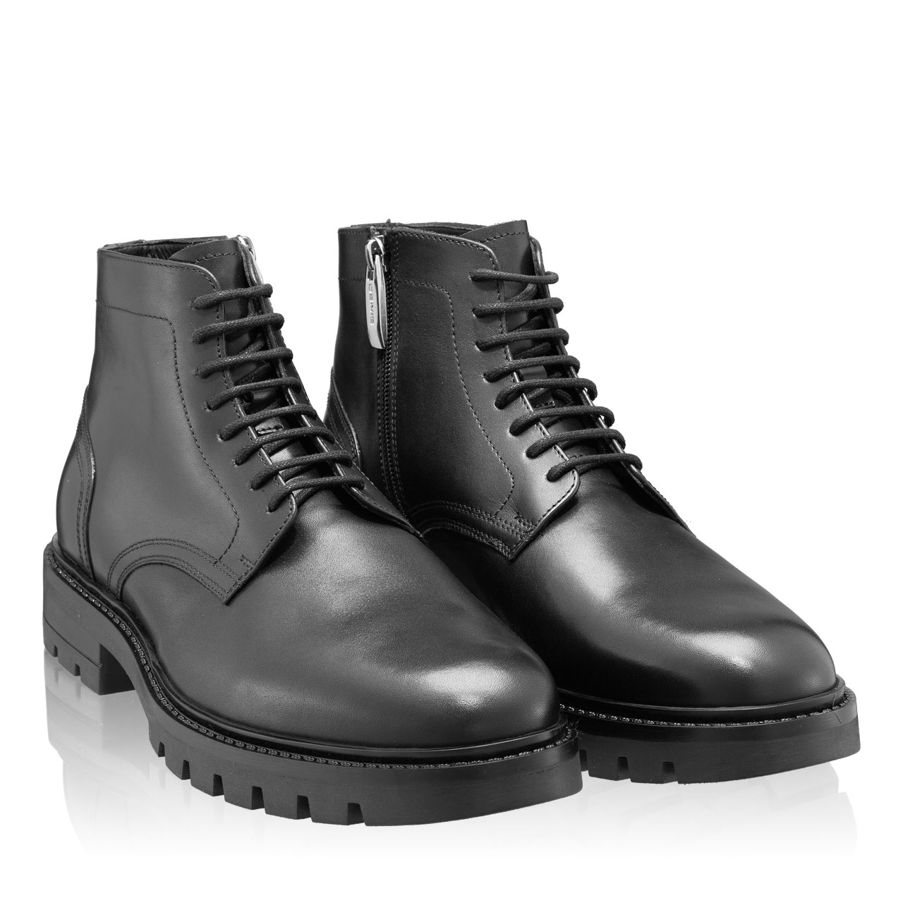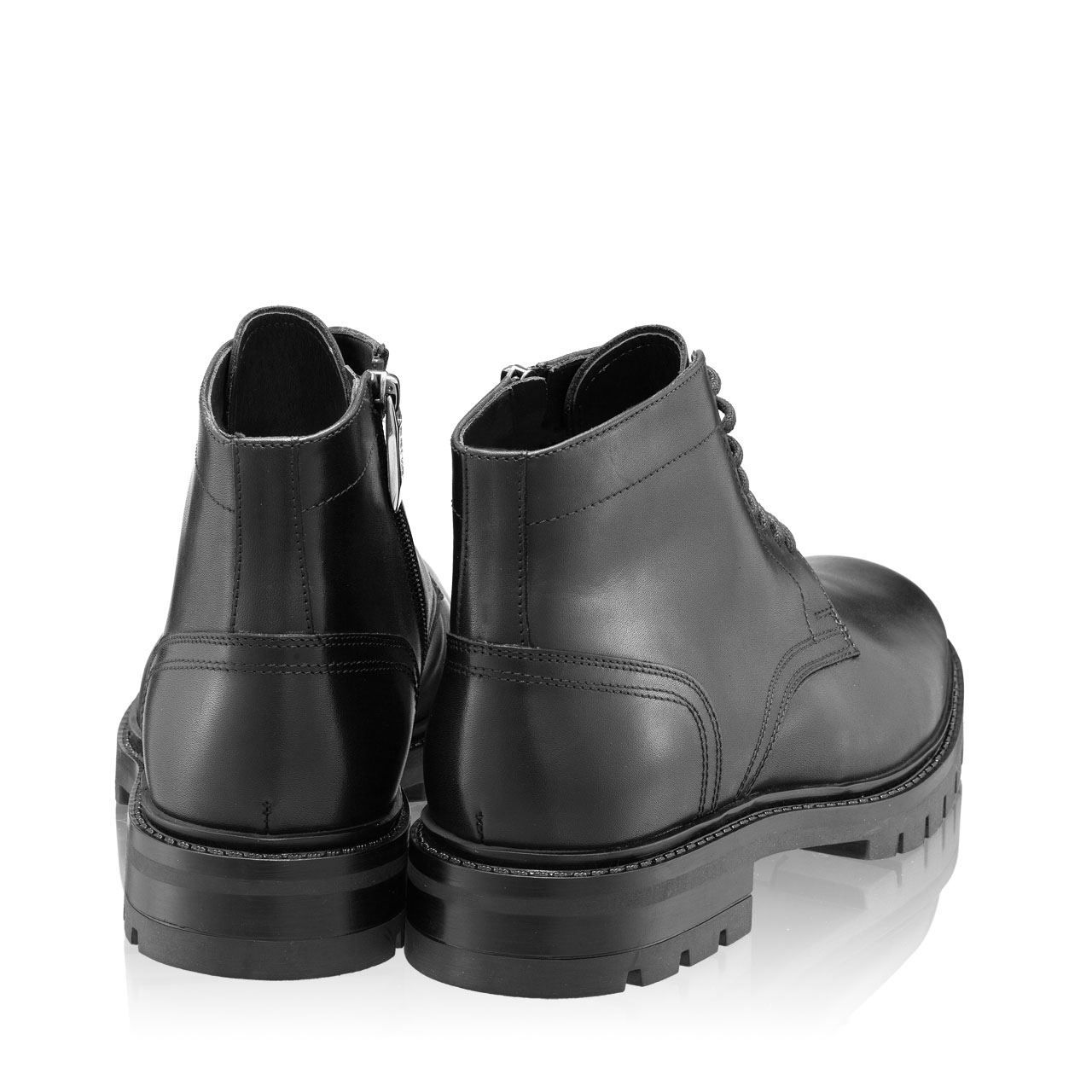 -natural leather-fur lining-lace-up closure