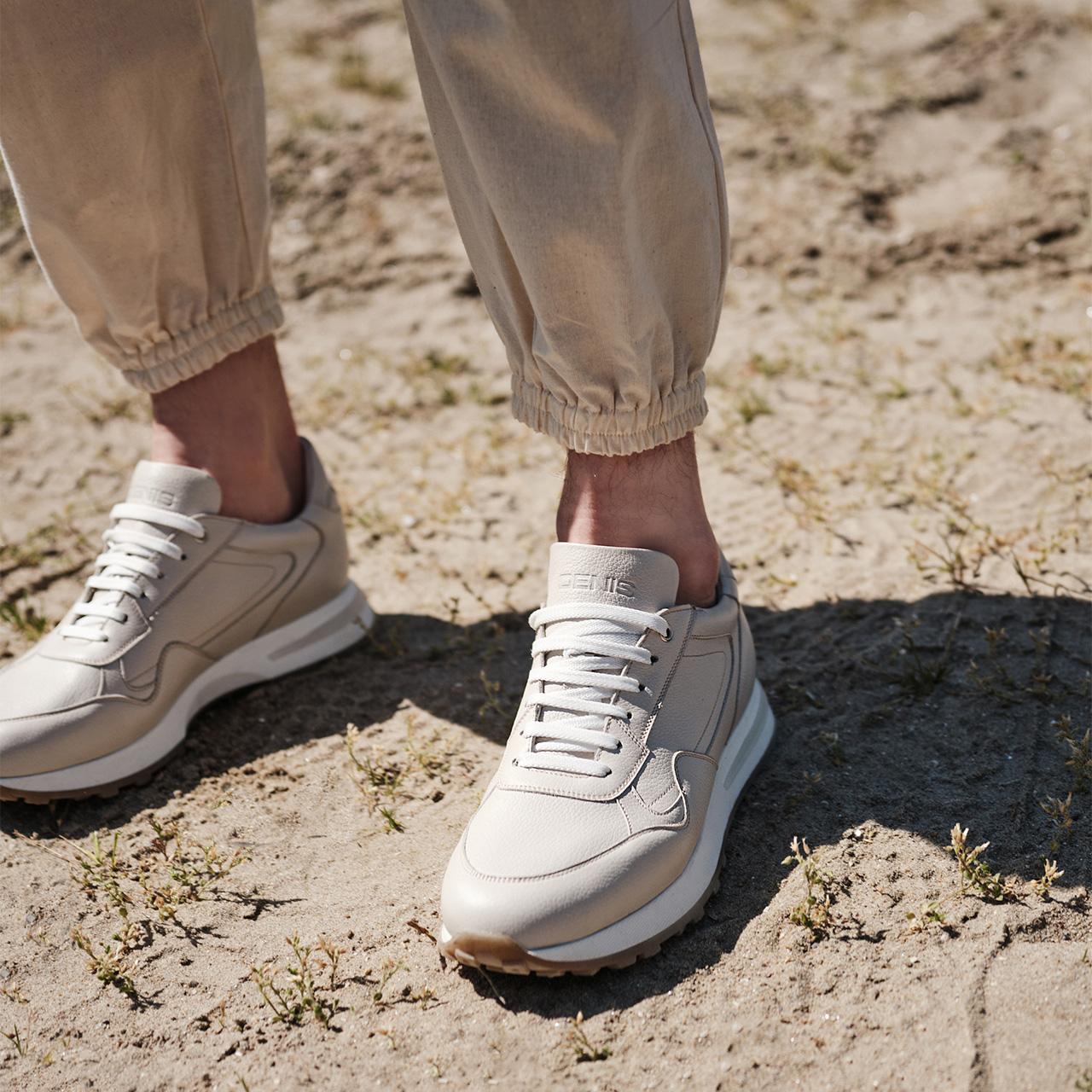 - natural leather- leather lining- decorative perforations- personalised with Denis logo- lace-up closure
