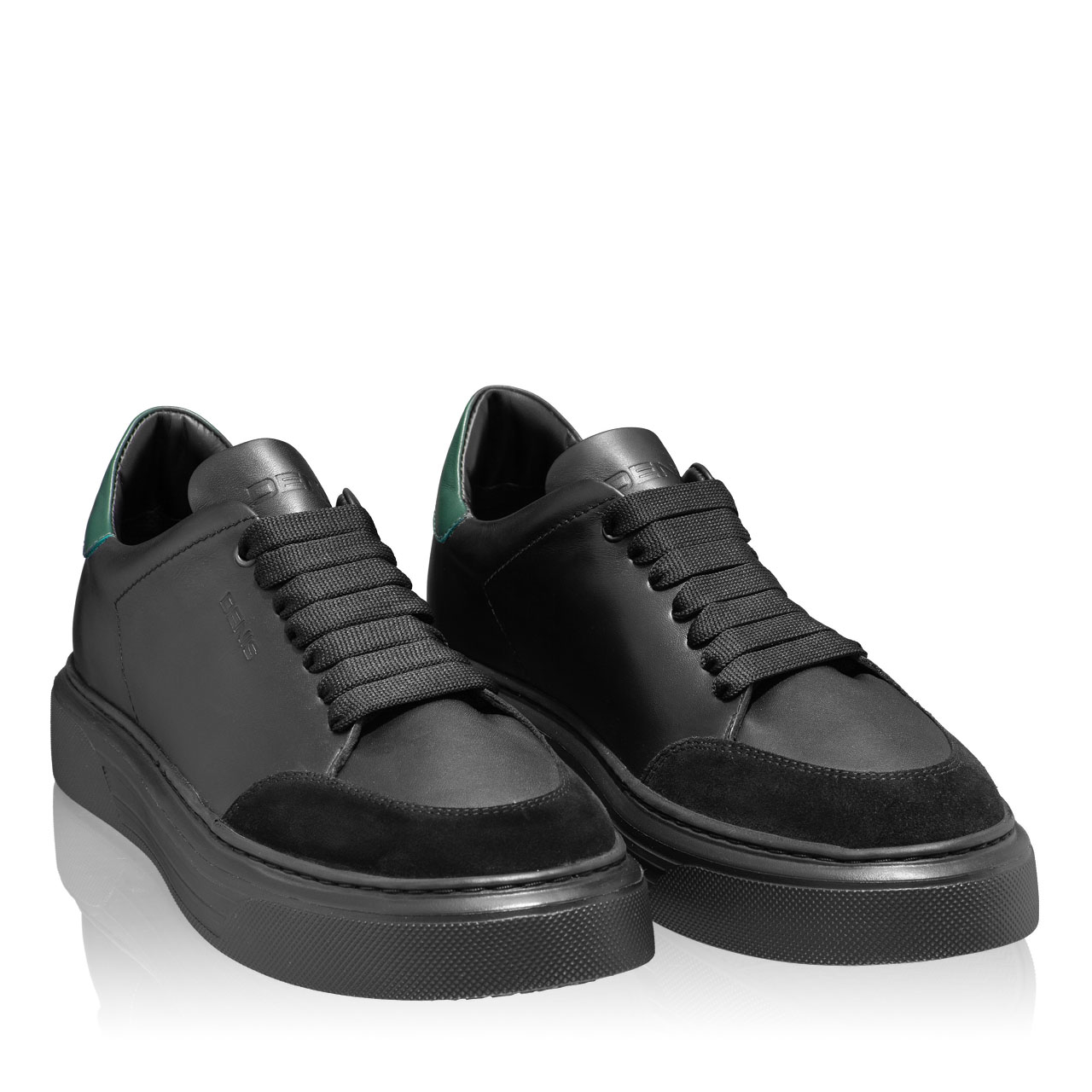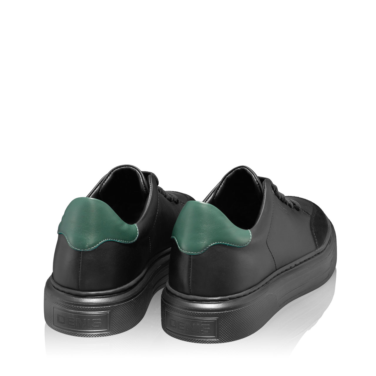 - natural leather- leather lining- personalised with Denis logo- suede leather detail- green leather detail- lace-up closure