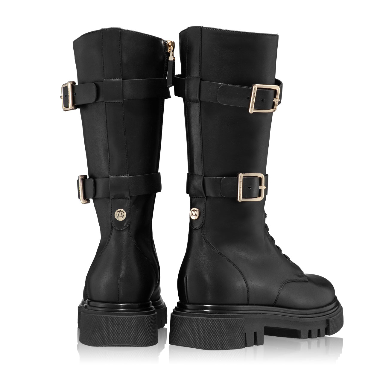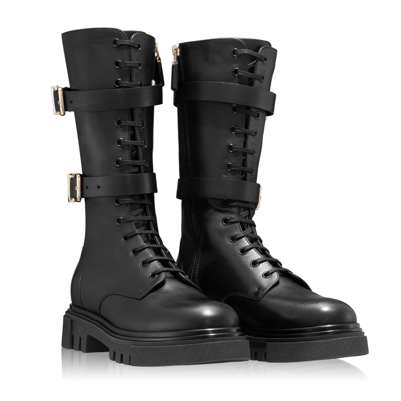 -natural leather-fur lining-zipper closure-lace-up details-personalised with two lateral buckle-detachable lateral buckles-20mm heel