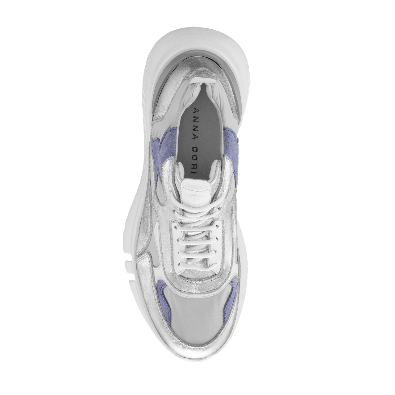 - natural laminated leather- leather lining- lace-up closure- personalised with Anna Cori monogram