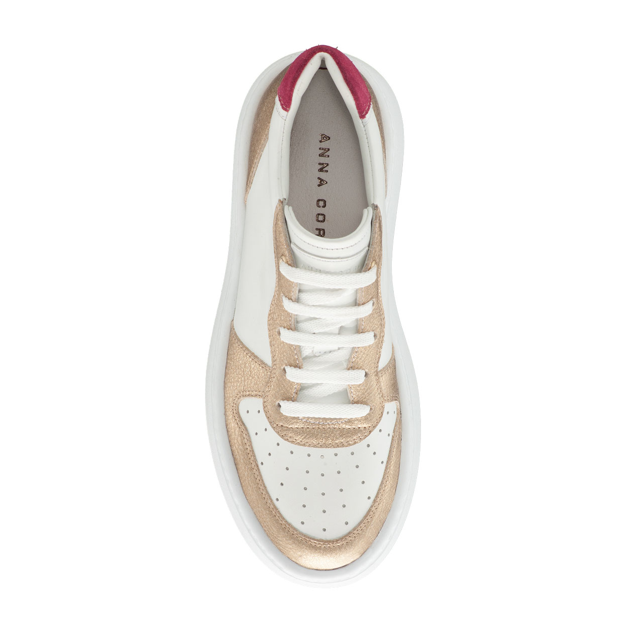 -natural leather and laminated leather-leather lining-lace-up closure-personalised with Anna Cori monogram-gold accessory