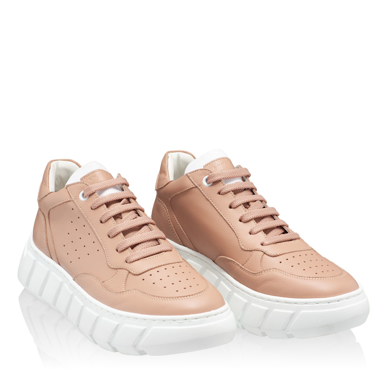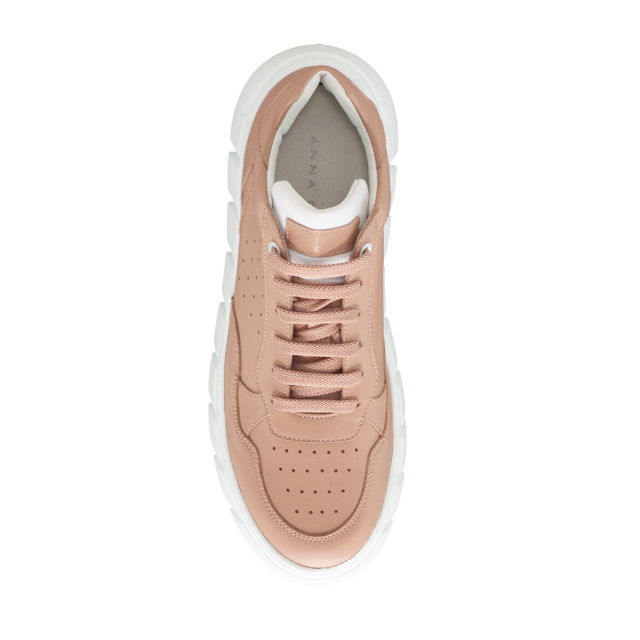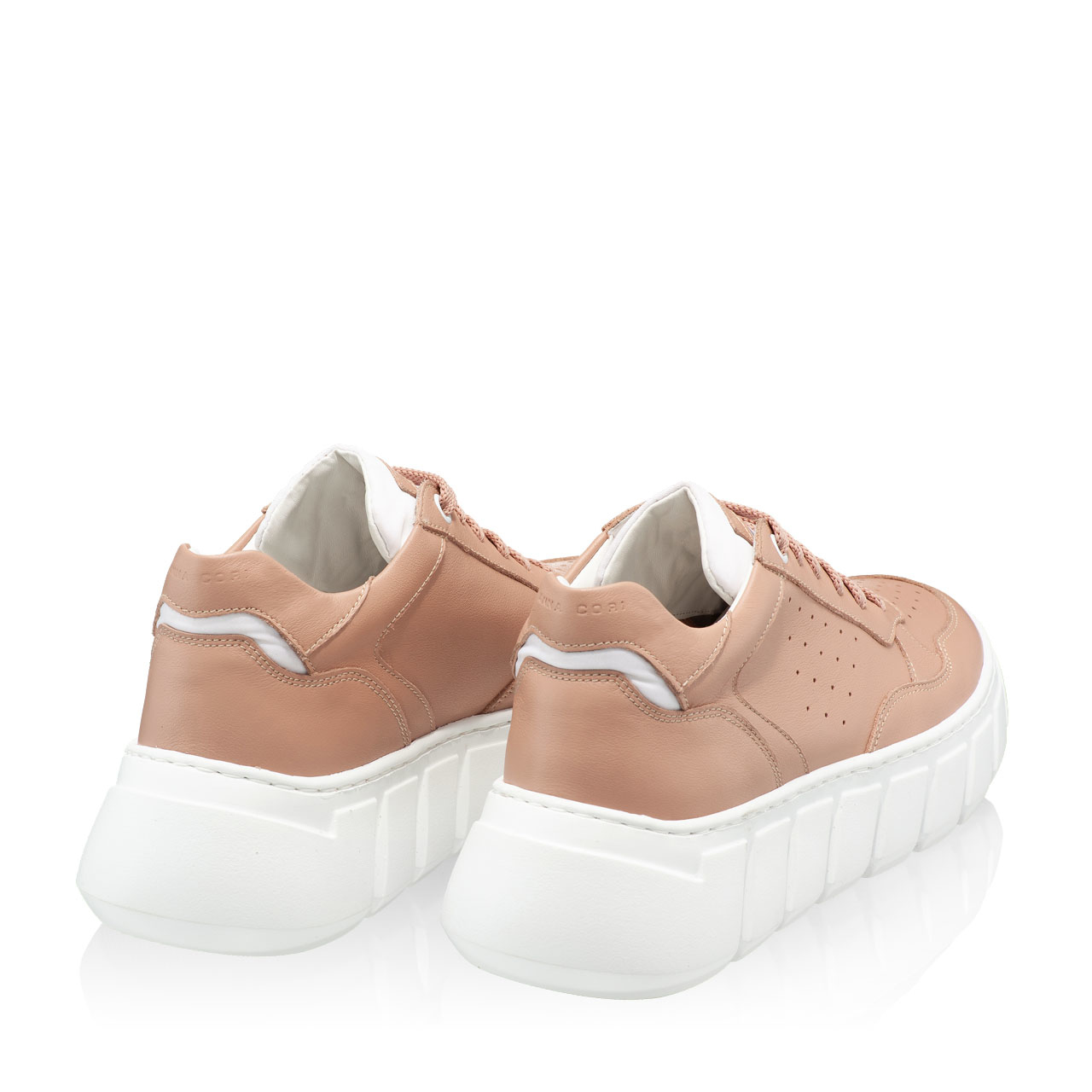 -natural leather-leather lining-laminated leather details-lace-up closure-personalised with Anna Cori logo