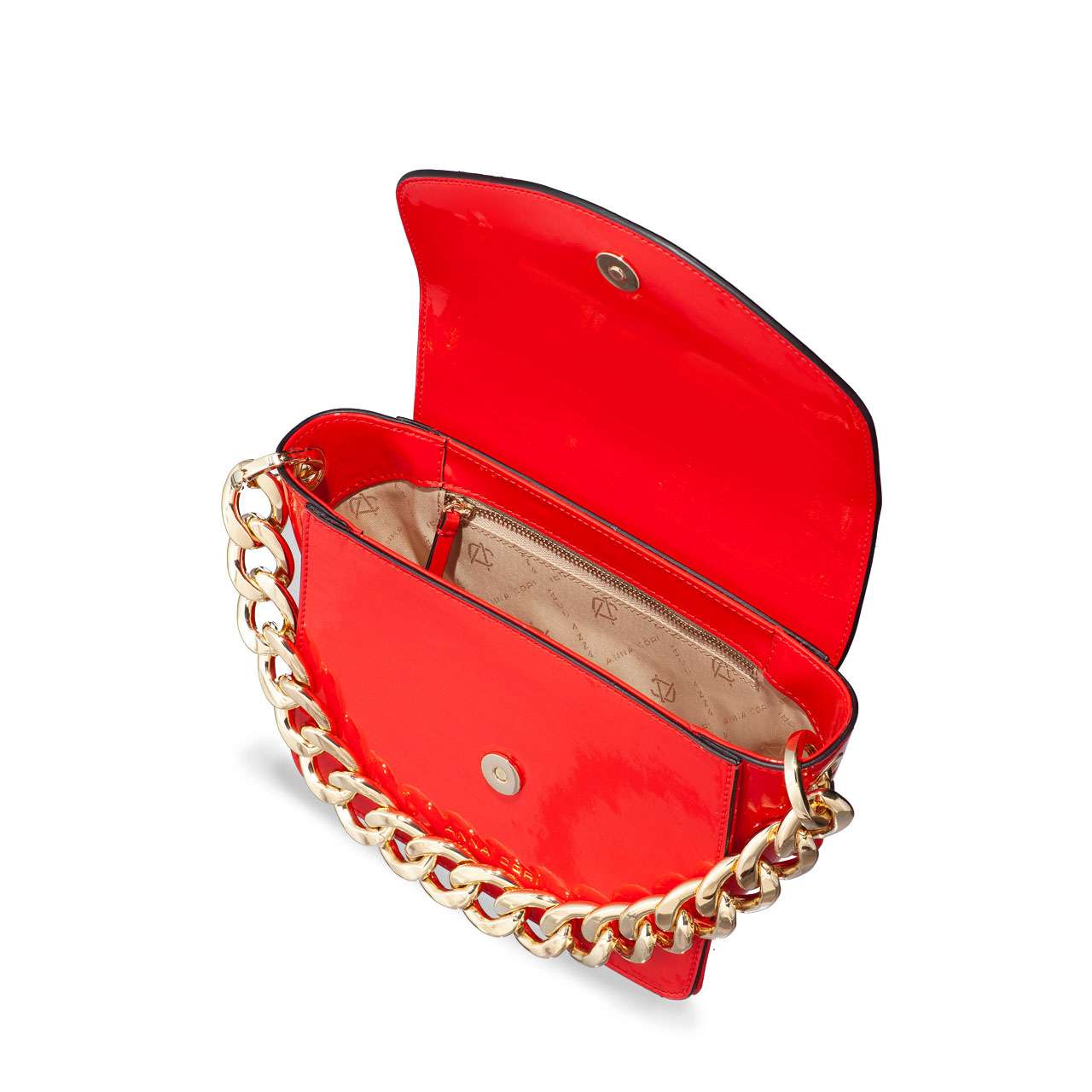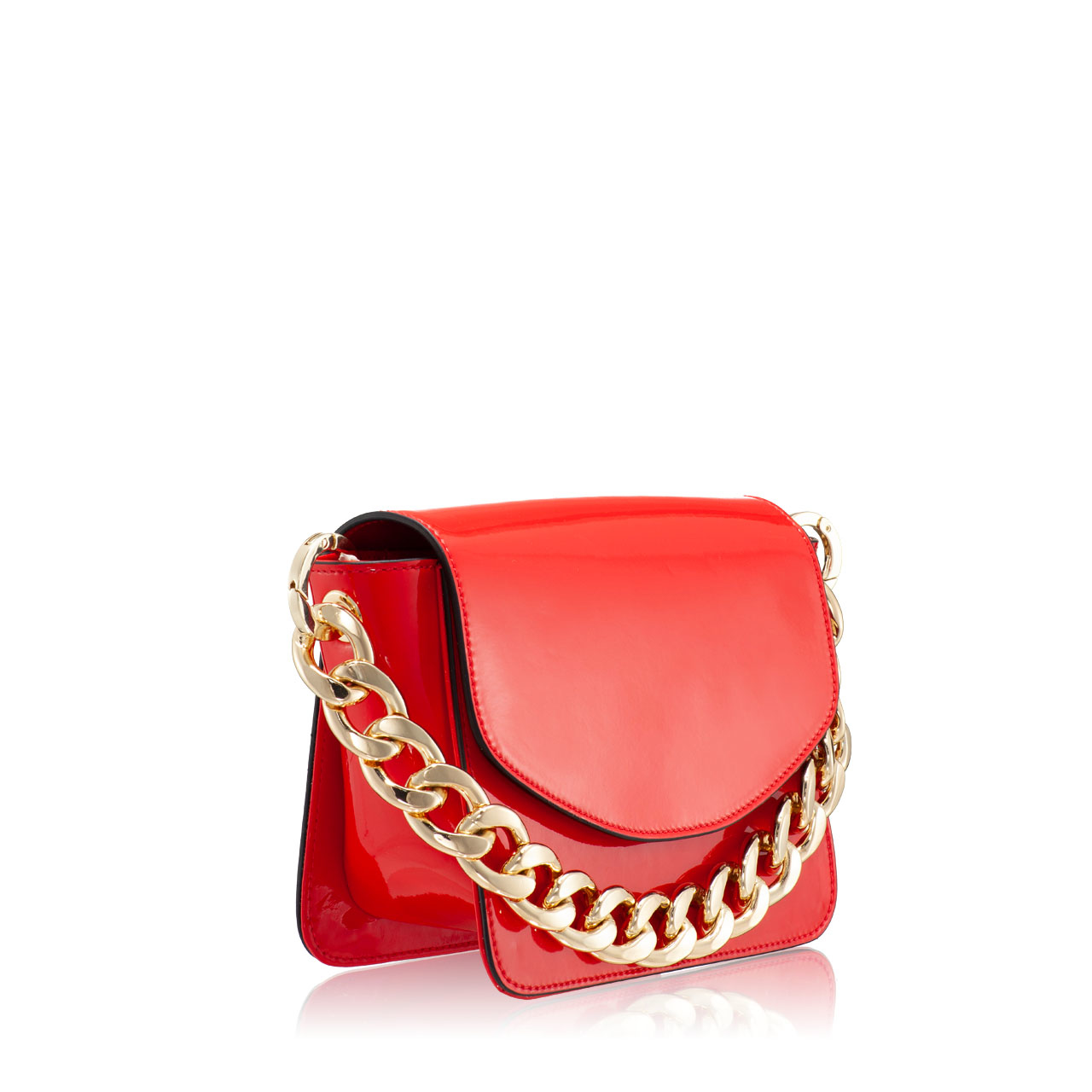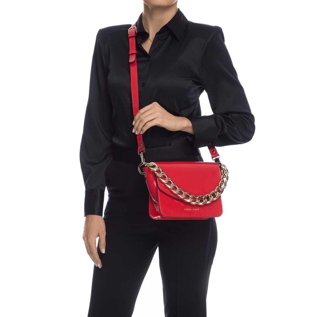 -natural patent leather-one compartment-two interior pocket-personalised with ANNA CORI logo-magnet snap closure-gold color accessory-adjustable and detachable shoulder strap