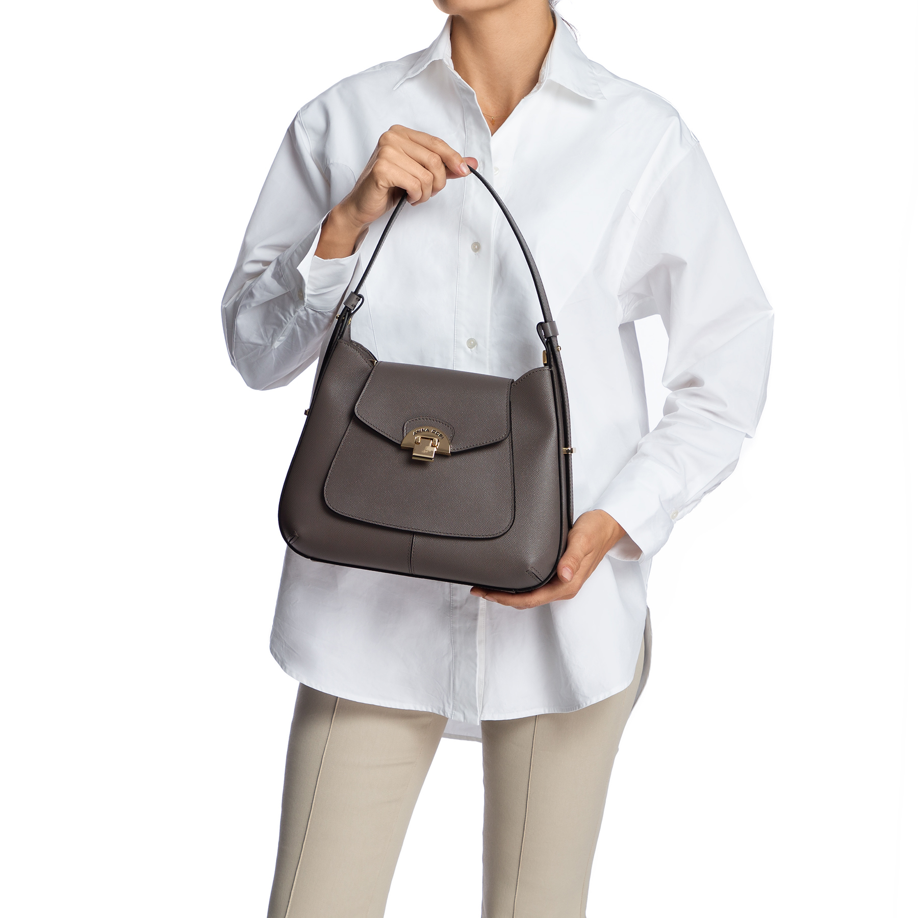 Spacious yet refined, the Adora bag is a shoulder bag in a classic shape, with a secure buckle closure and an adjustable genuine leather top handle.