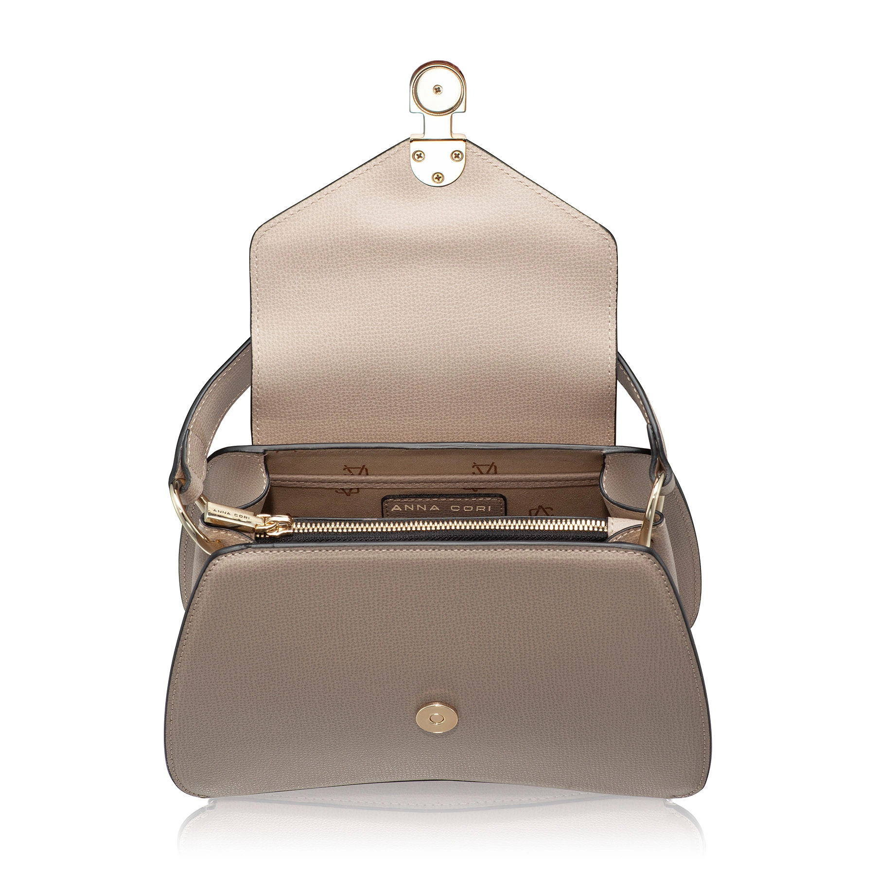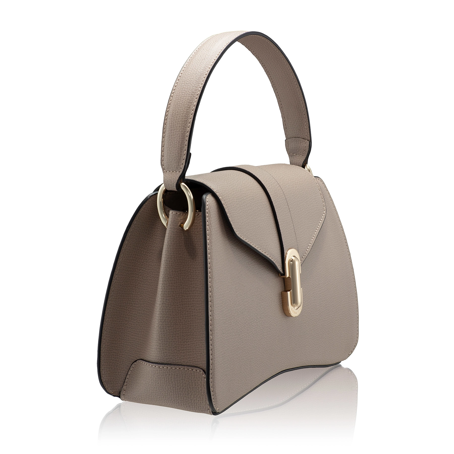 ANERA 02 impresses with its classic elegance, with a structured silhouette and gold metallic accents, ideal for the office or special occasions. It can be carried both in the hand and on the shoulder, offering versatility in a sophisticated design.