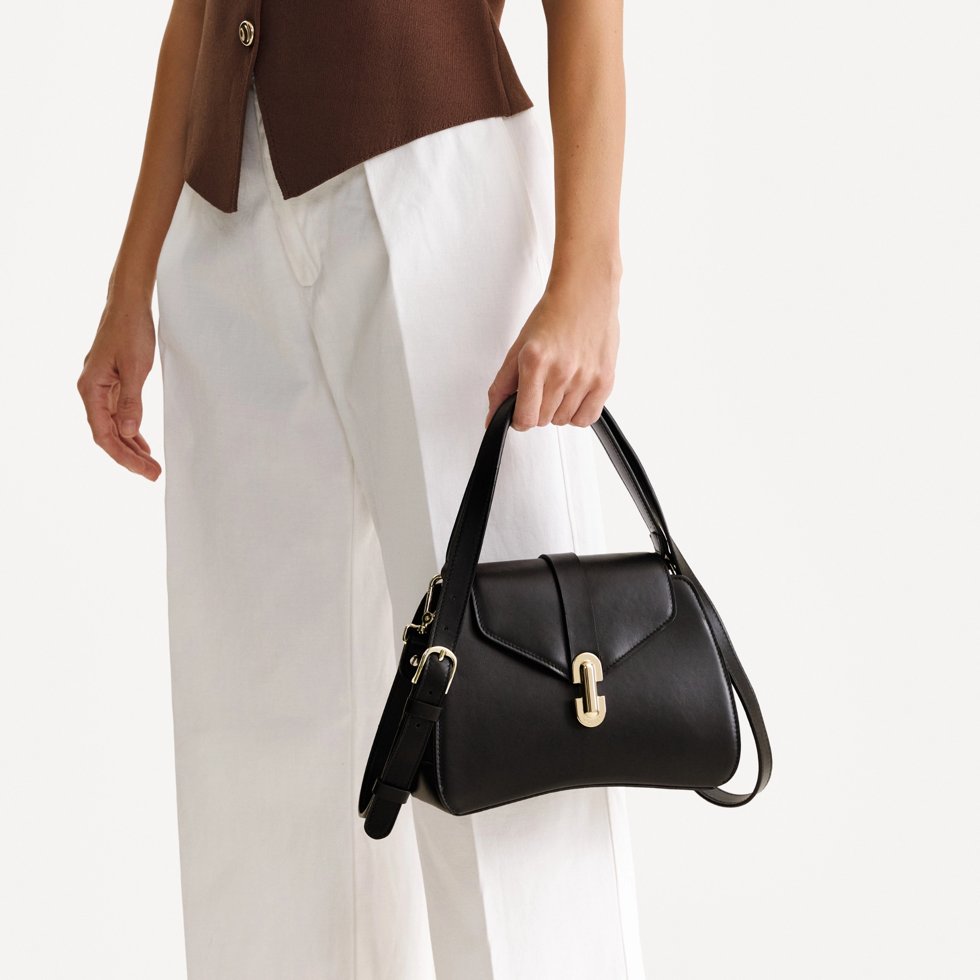ANERA 02 impresses with its classic elegance, with a structured silhouette and gold metallic accents, ideal for the office or special occasions. It can be carried both in the hand and on the shoulder, offering versatility in a sophisticated design.
