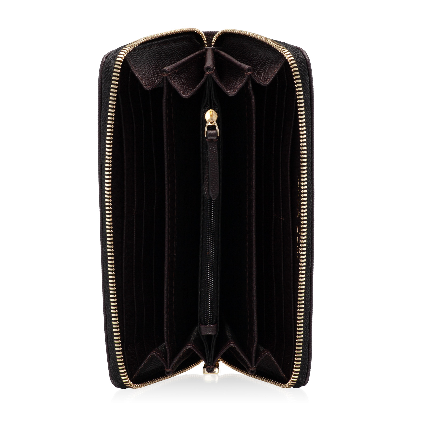 -natural leather-4 internal compartments-8 card holders-one internal zipper pocket-zipper closure