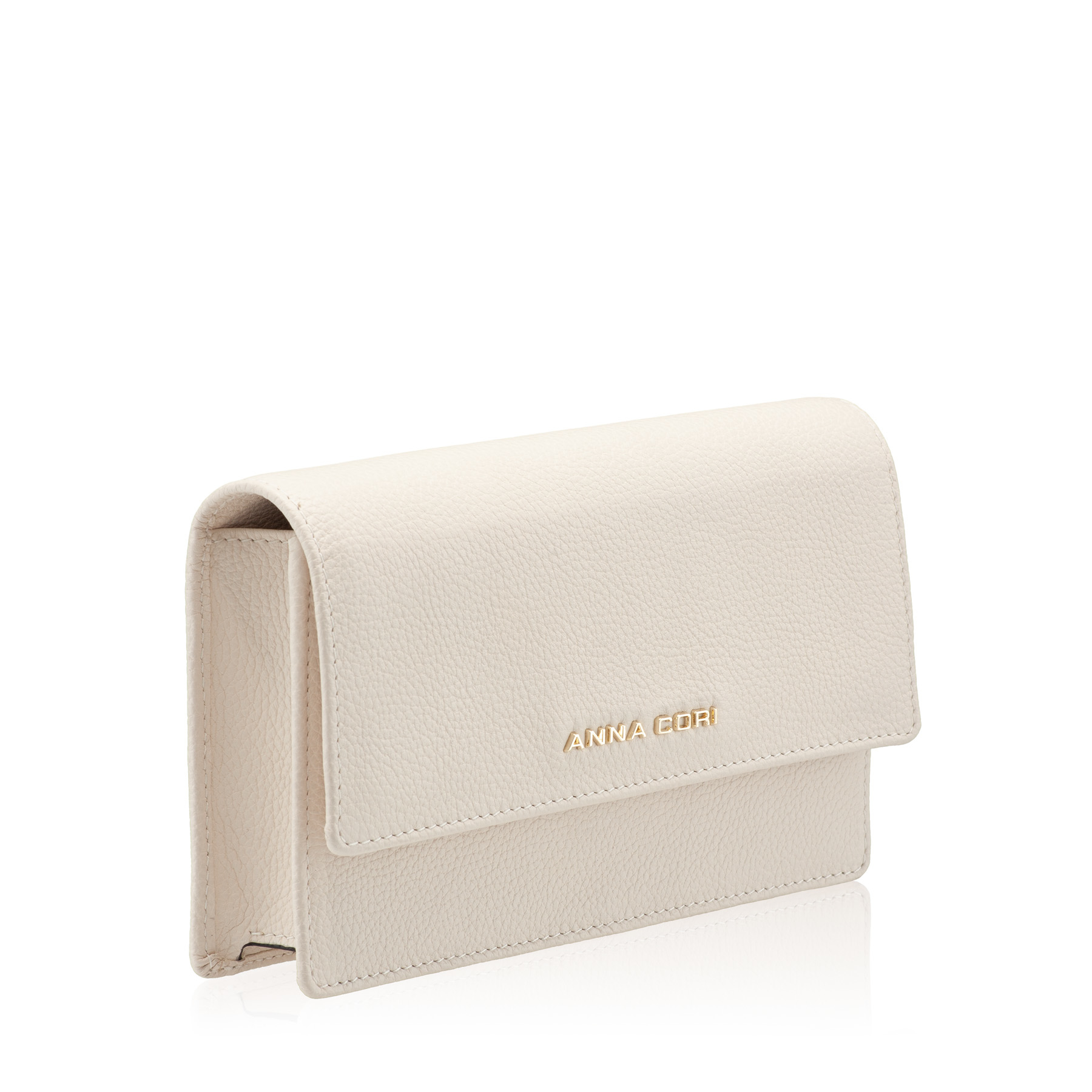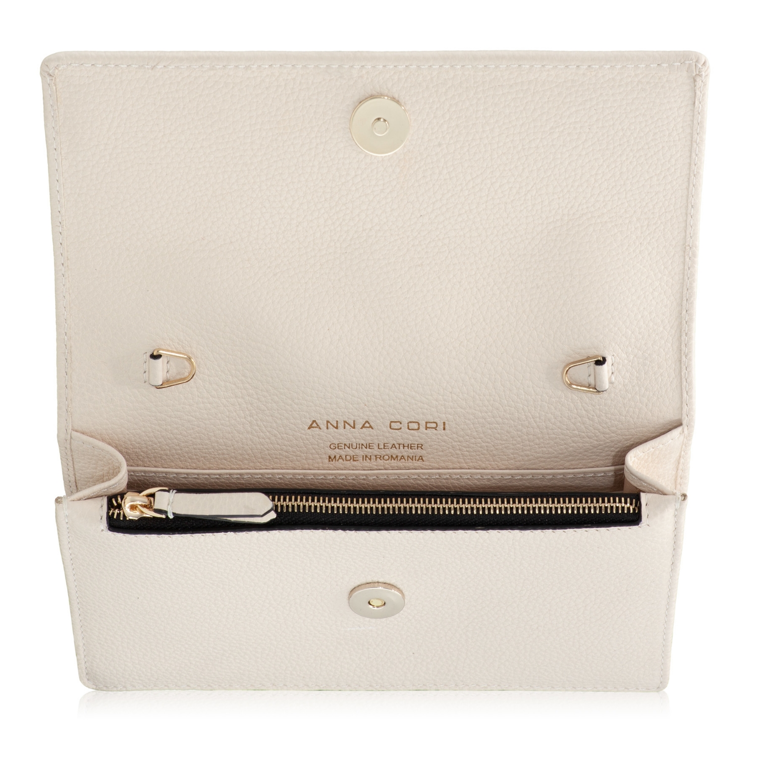 The ARNA envelope bag is an Icon Anna Cori model thanks to the elegance it shows and the diversity of shades in which it is found. It is complexly compartmentalized with two compartments, a central zippered pocket and 6 card holders. The Anna Cori monogram in gold metal manages to add an extra touch of elegance.