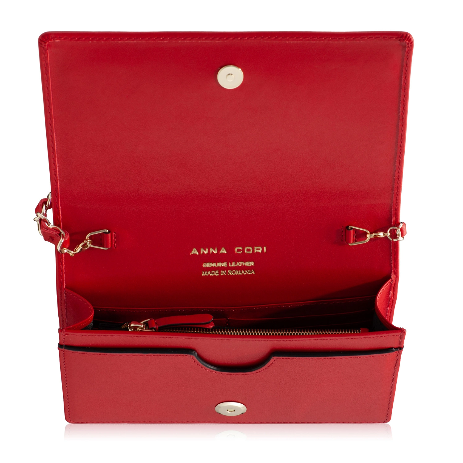 The ARNA envelope bag is an Icon Anna Cori model thanks to the elegance it shows and the diversity of shades in which it is found. It is complexly compartmentalized with two compartments, a central zippered pocket and 6 card holders. The Anna Cori monogram in gold metal manages to add an extra touch of elegance.