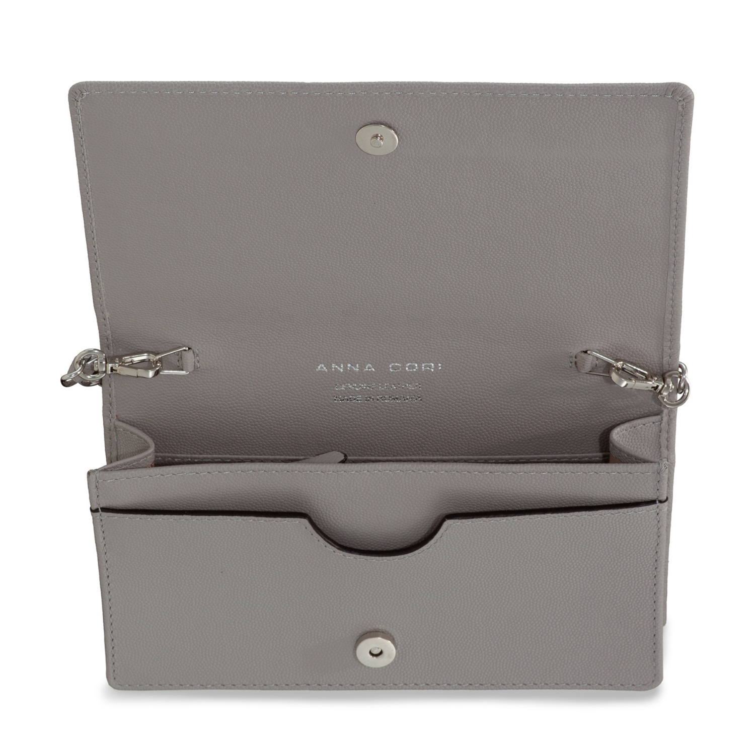 The ARNA envelope bag is an Icon Anna Cori model thanks to the elegance it shows and the diversity of shades in which it is found. It is complexly compartmentalized with two compartments, a central zippered pocket and 6 card holders. The Anna Cori monogram in gold metal manages to add an extra touch of elegance.