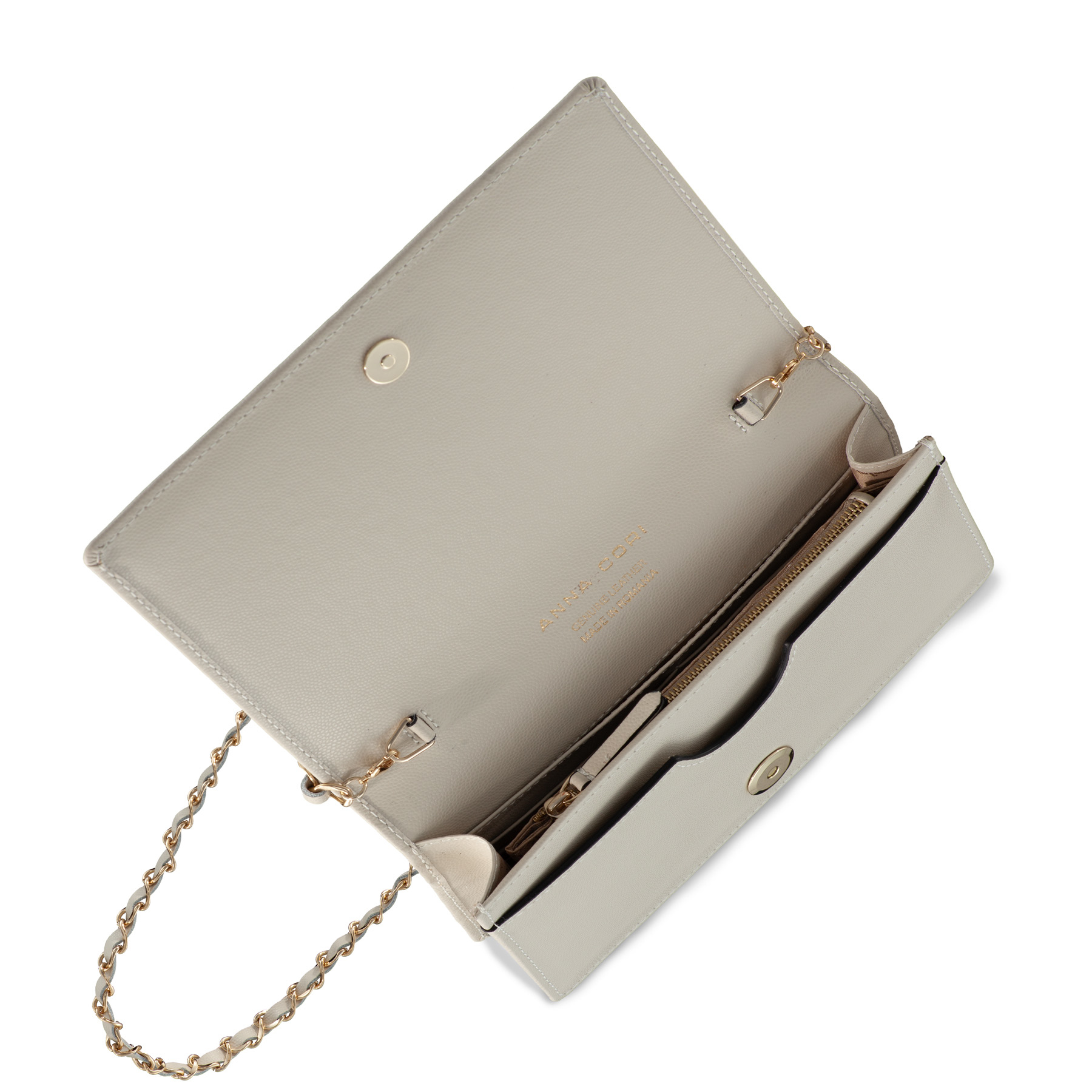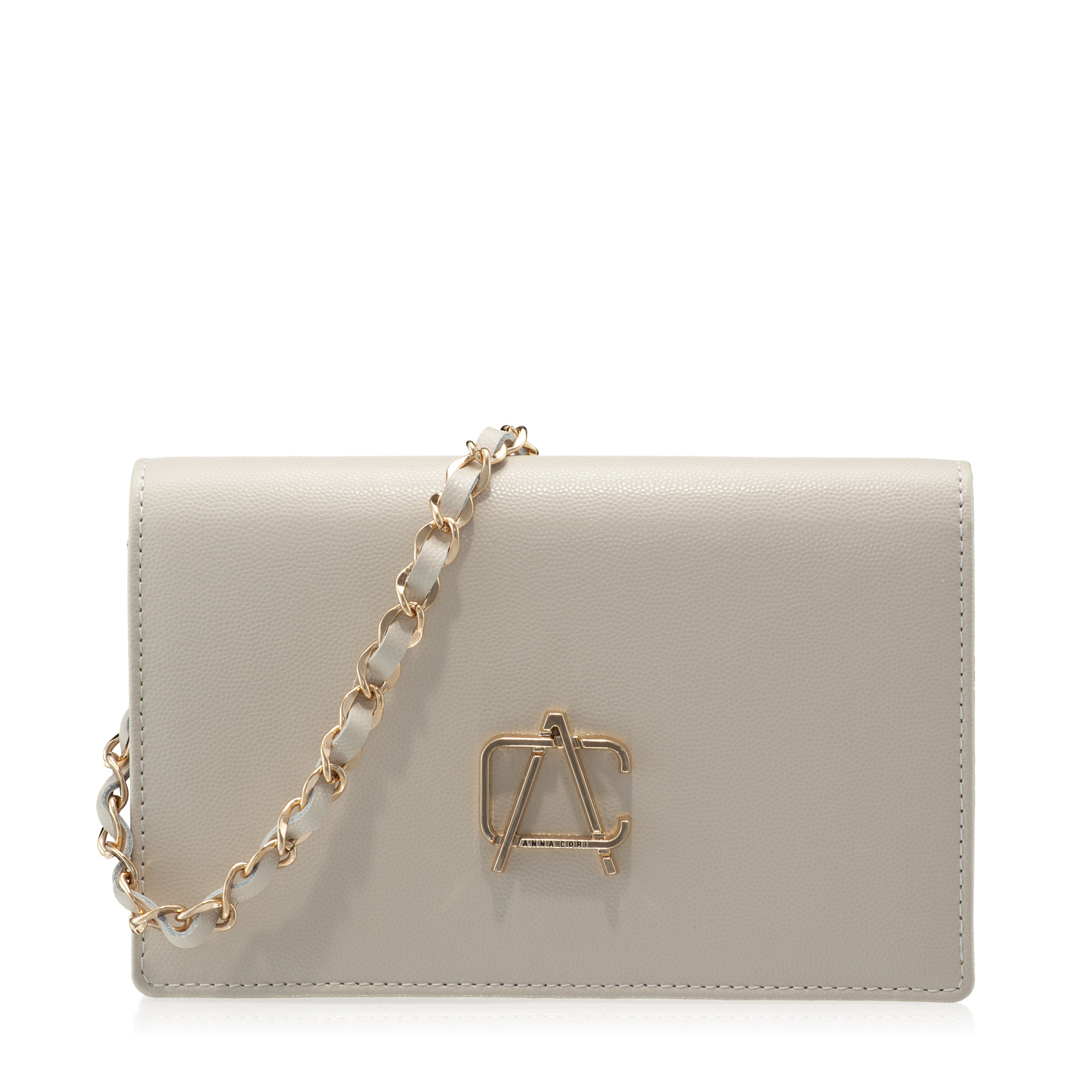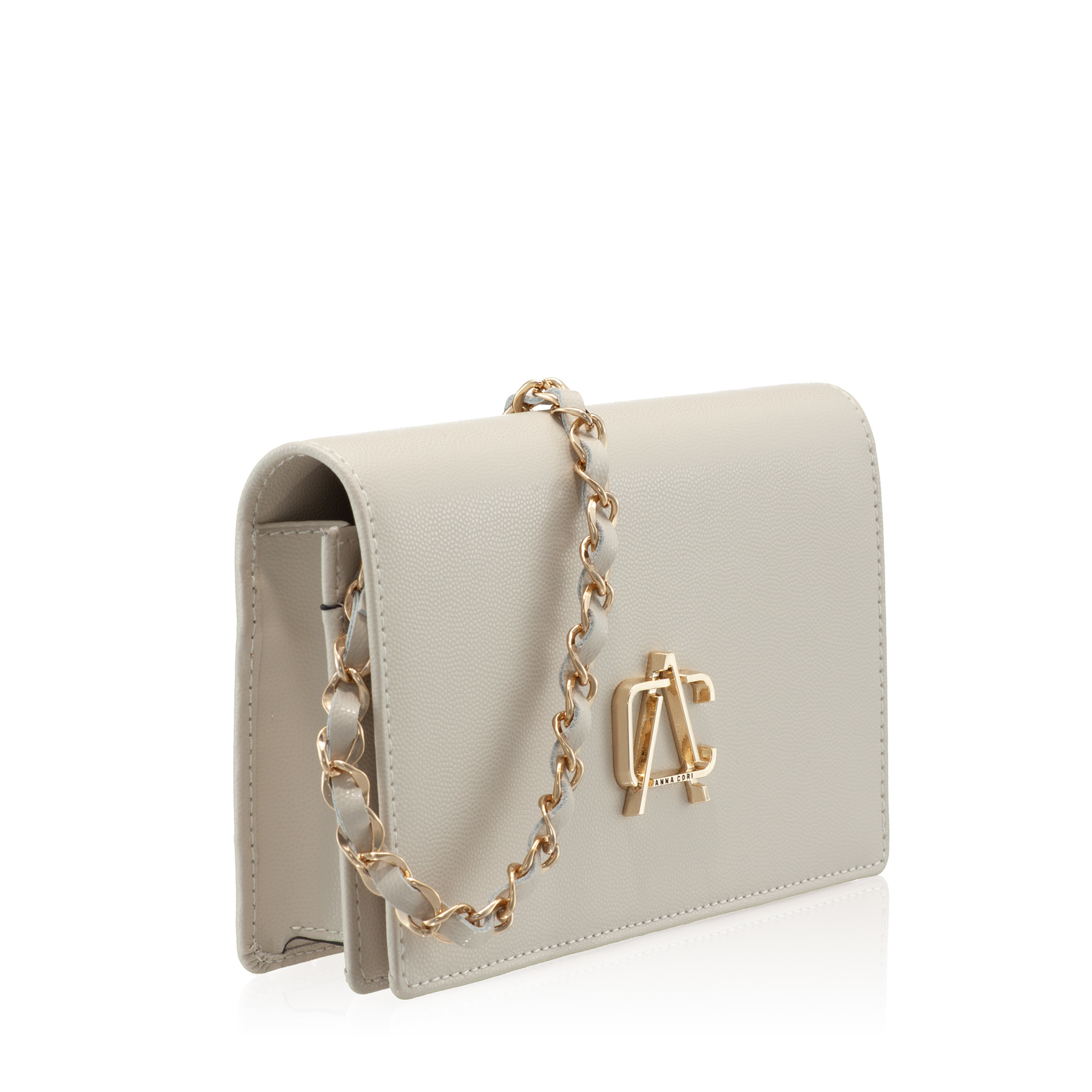 The ARNA envelope bag is an Icon Anna Cori model thanks to the elegance it shows and the diversity of shades in which it is found. It is complexly compartmentalized with two compartments, a central zippered pocket and 6 card holders. The Anna Cori monogram in gold metal manages to add an extra touch of elegance.