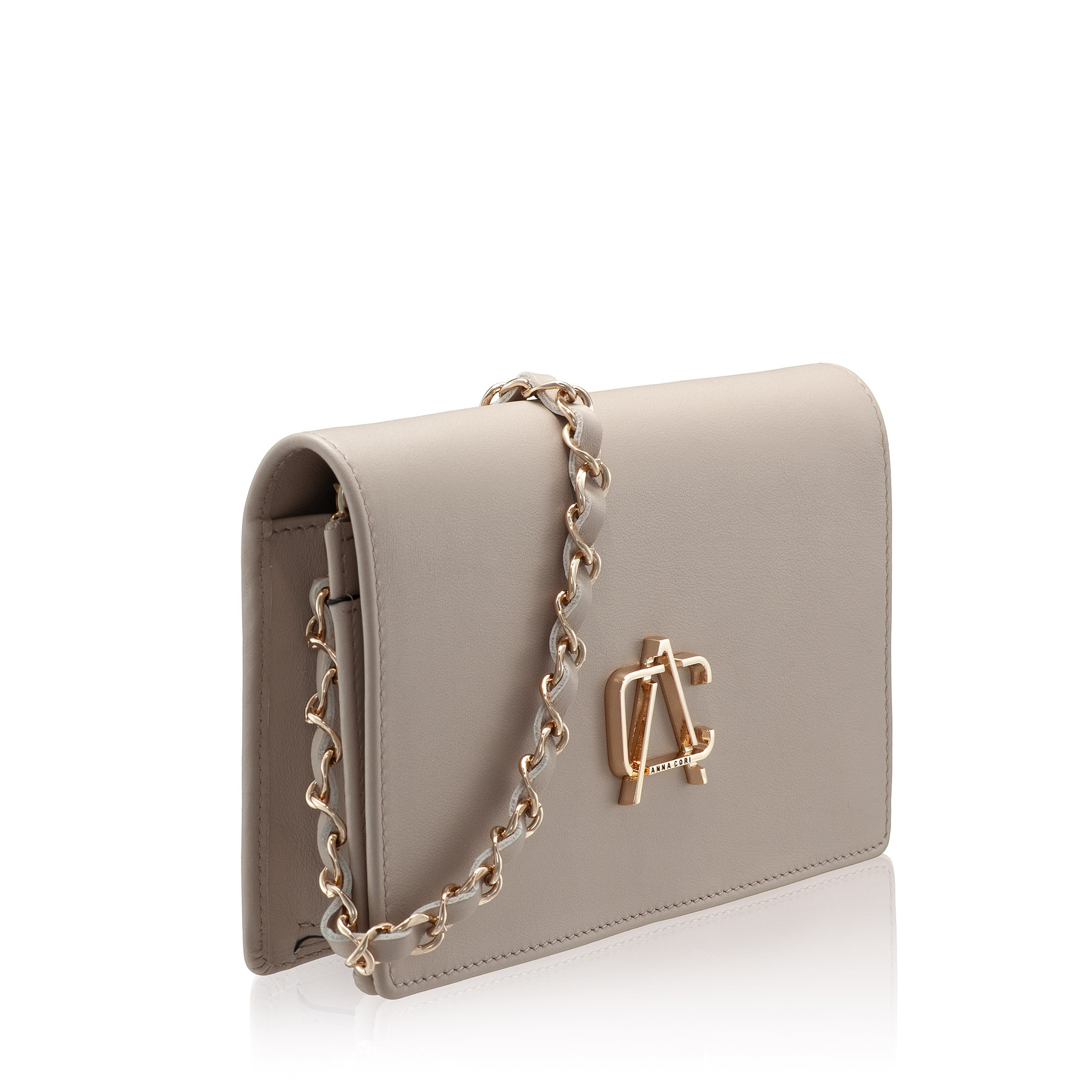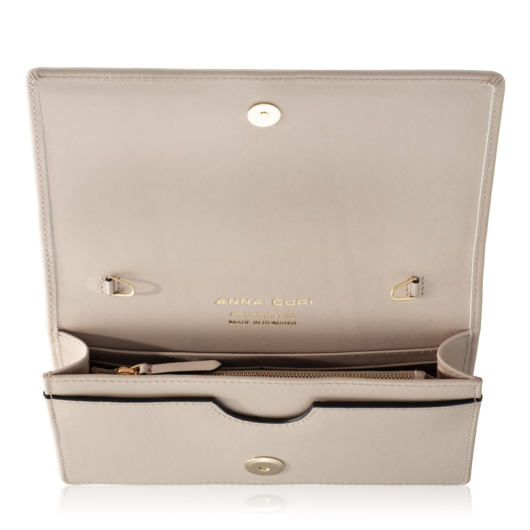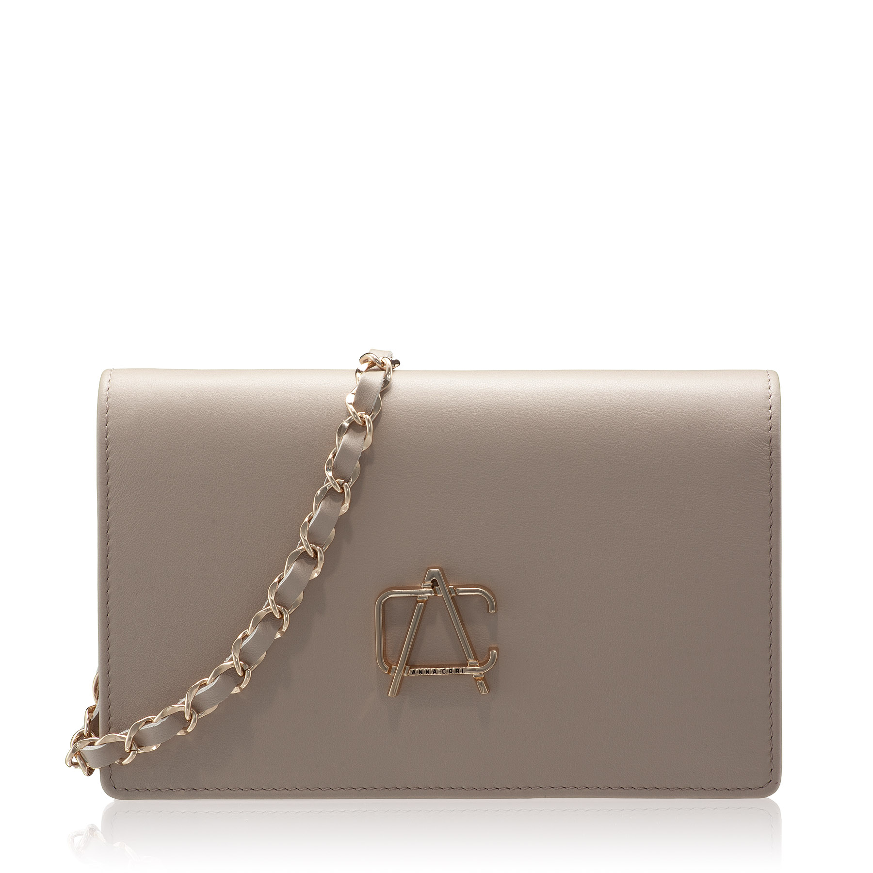 The ARNA envelope bag is an Icon Anna Cori model thanks to the elegance it shows and the diversity of shades in which it is found. It is complexly compartmentalized with two compartments, a central zippered pocket and 6 card holders. The Anna Cori monogram in gold metal manages to add an extra touch of elegance.