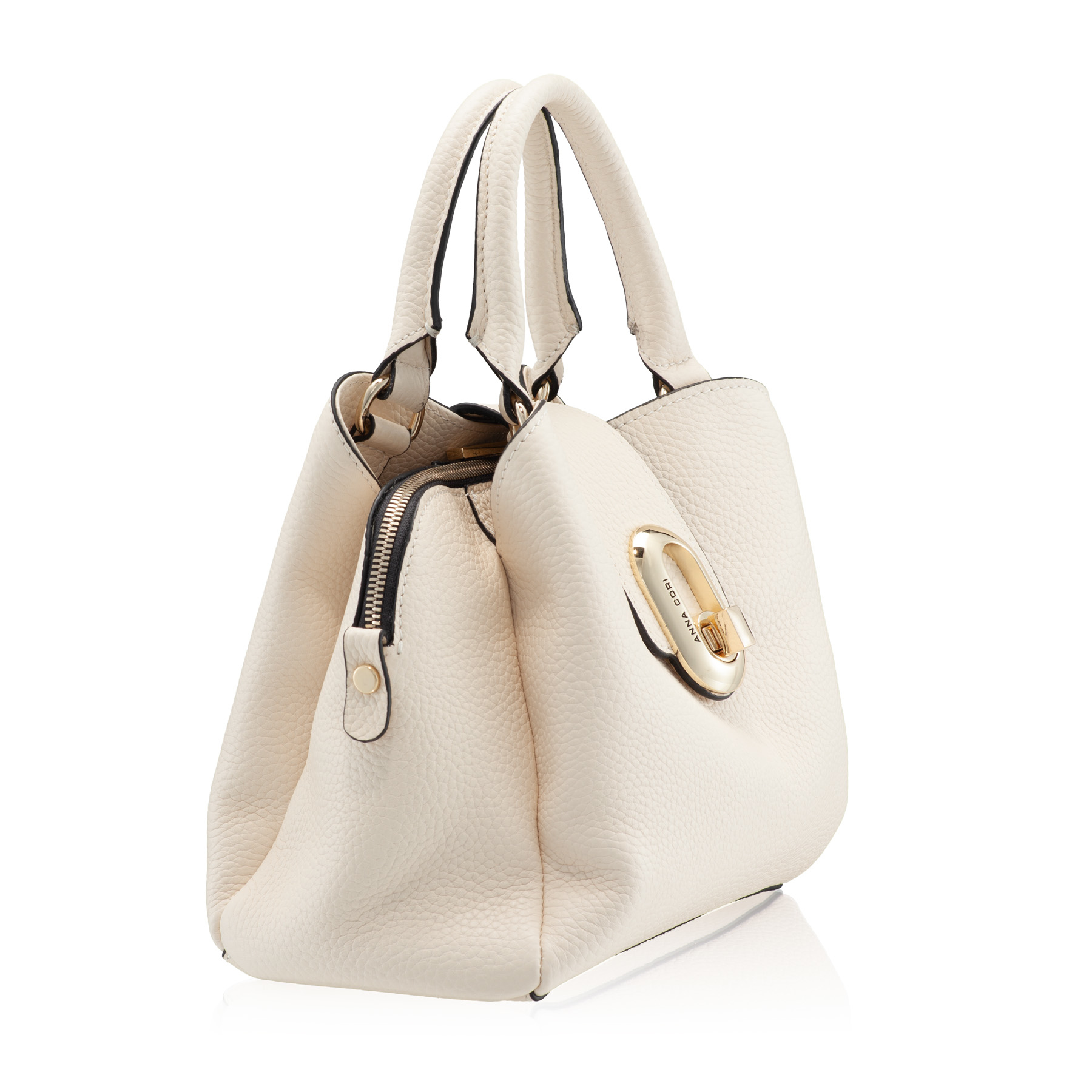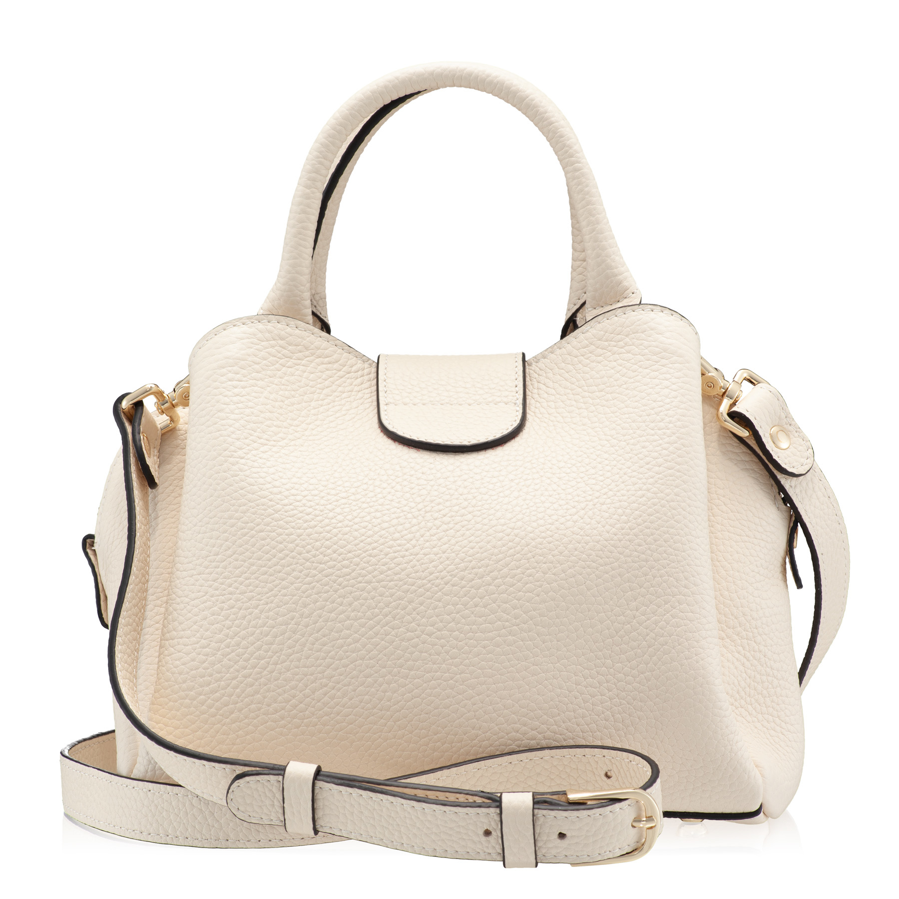 The #Betia bag is created in a flexible shape, with a spacious interior and many pockets. Its design is accentuated by the golden metal closing buckle and the natural leather handles.