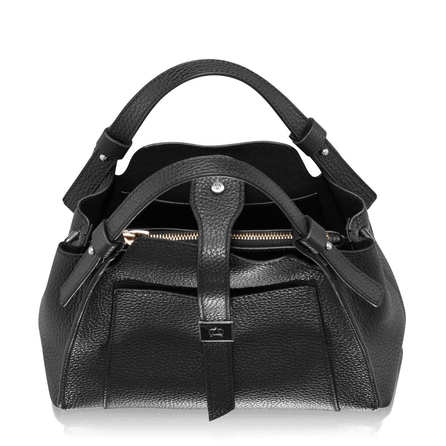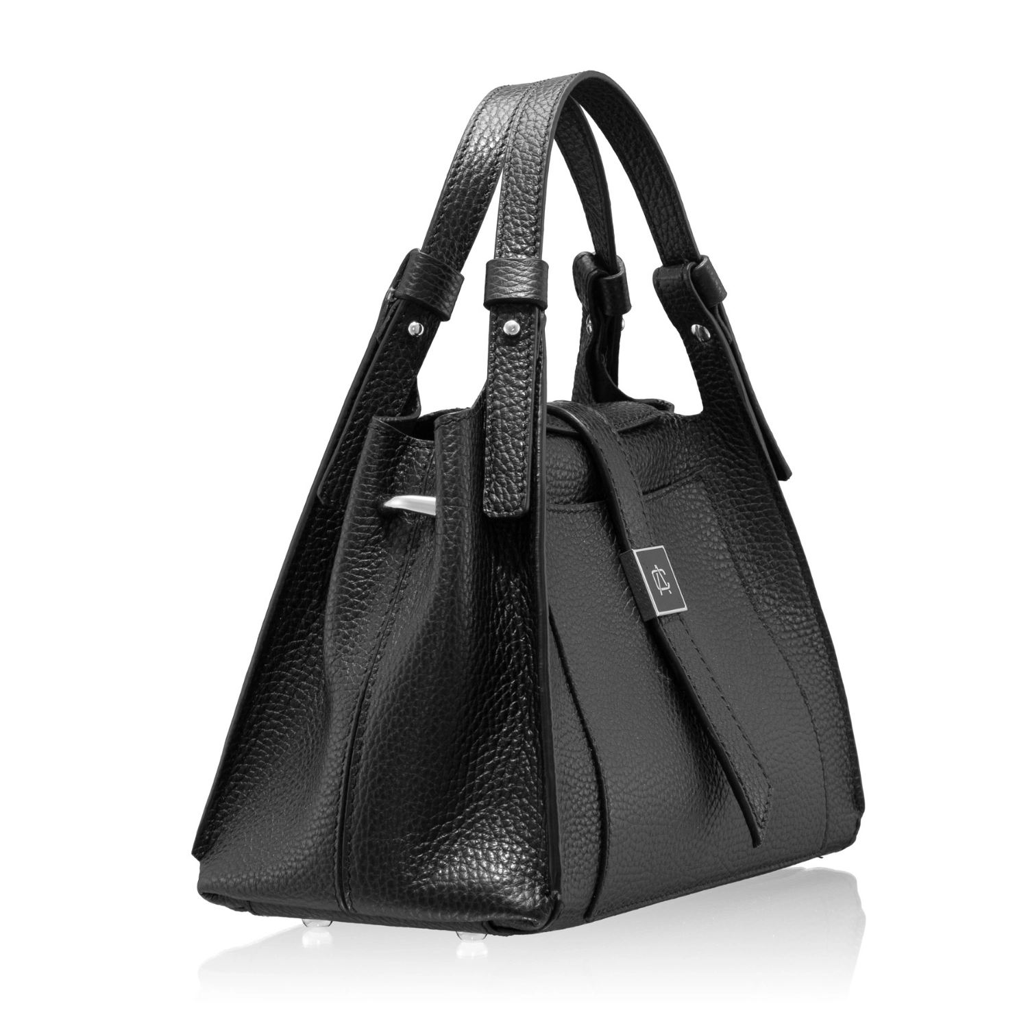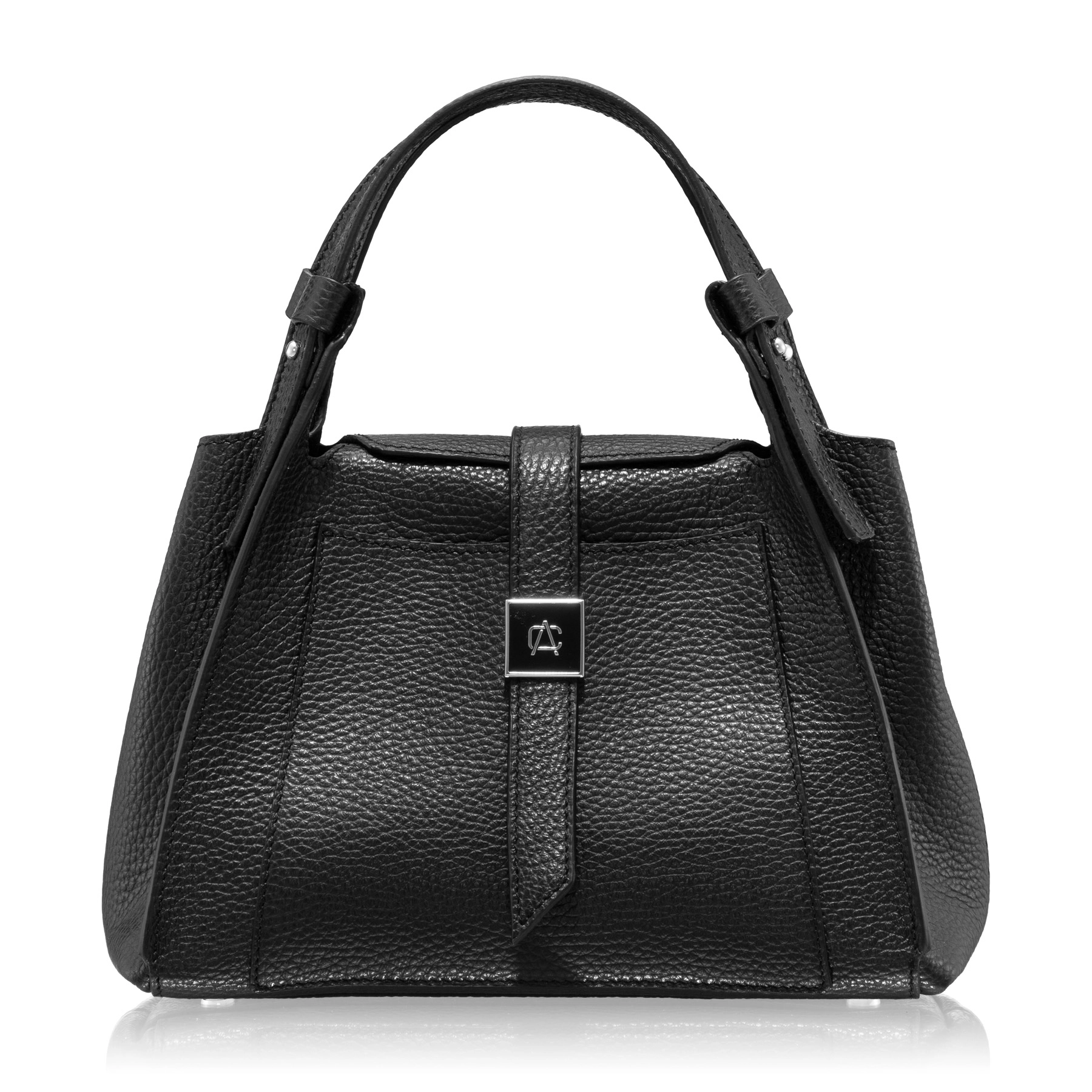 Crafted from high-quality genuine leather, this handbag stands out with its durable bottalato texture and sophisticated design. It features two interior compartments, an interior zip pocket, and a front exterior pocket.
