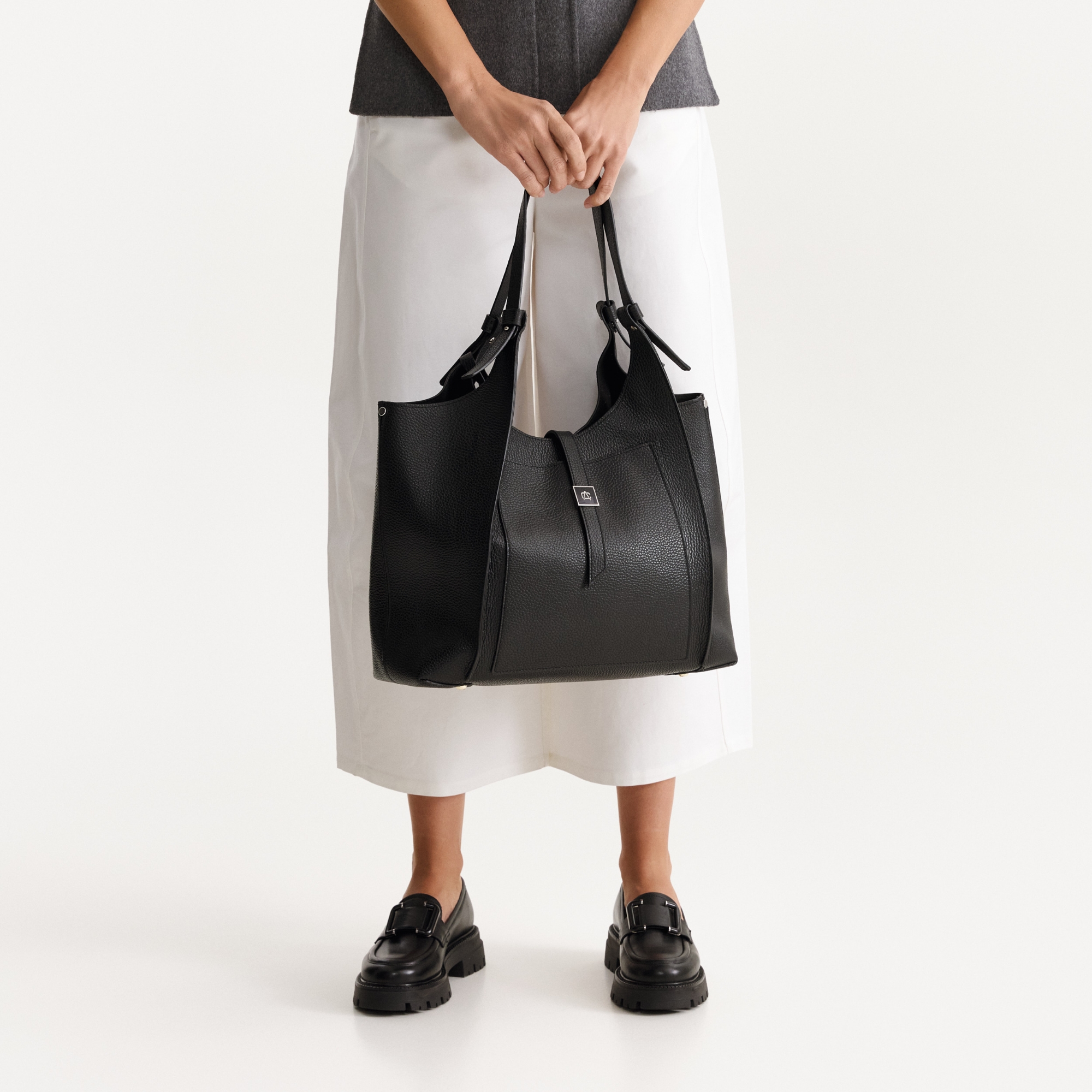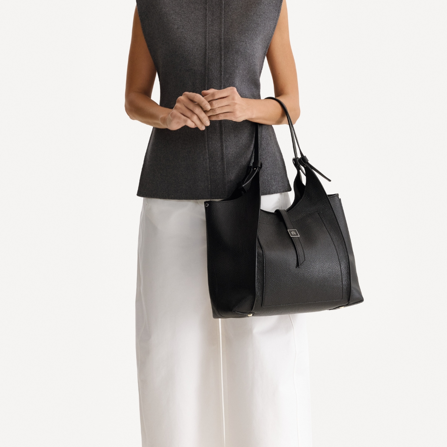 Women Leather Handbag BLUMA 03 BOTTALATO BLACK