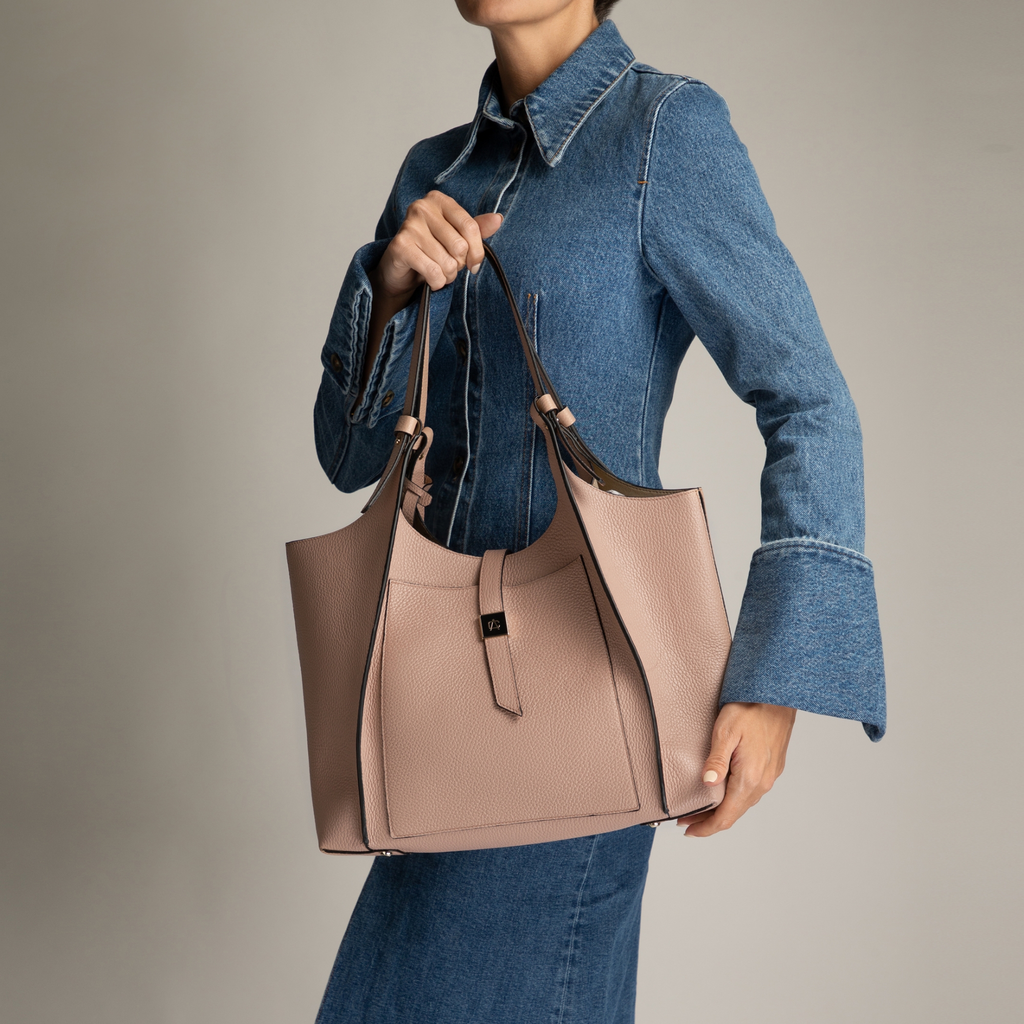 Women Leather Handbag BLUMA 03 BOTTALATO NUDE