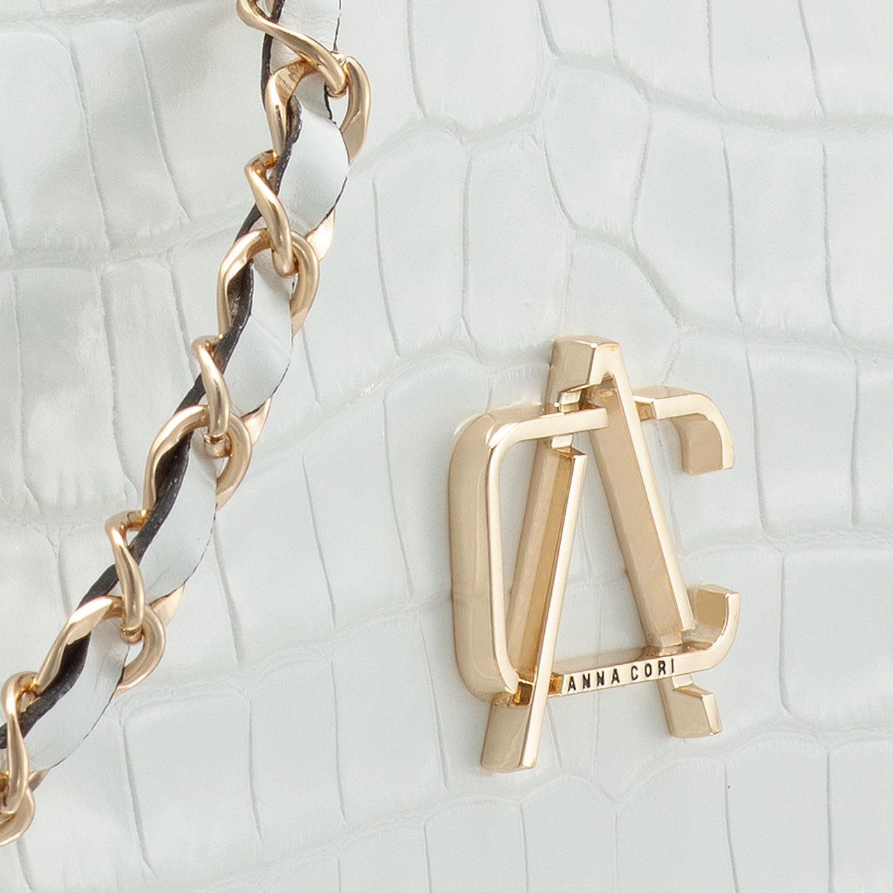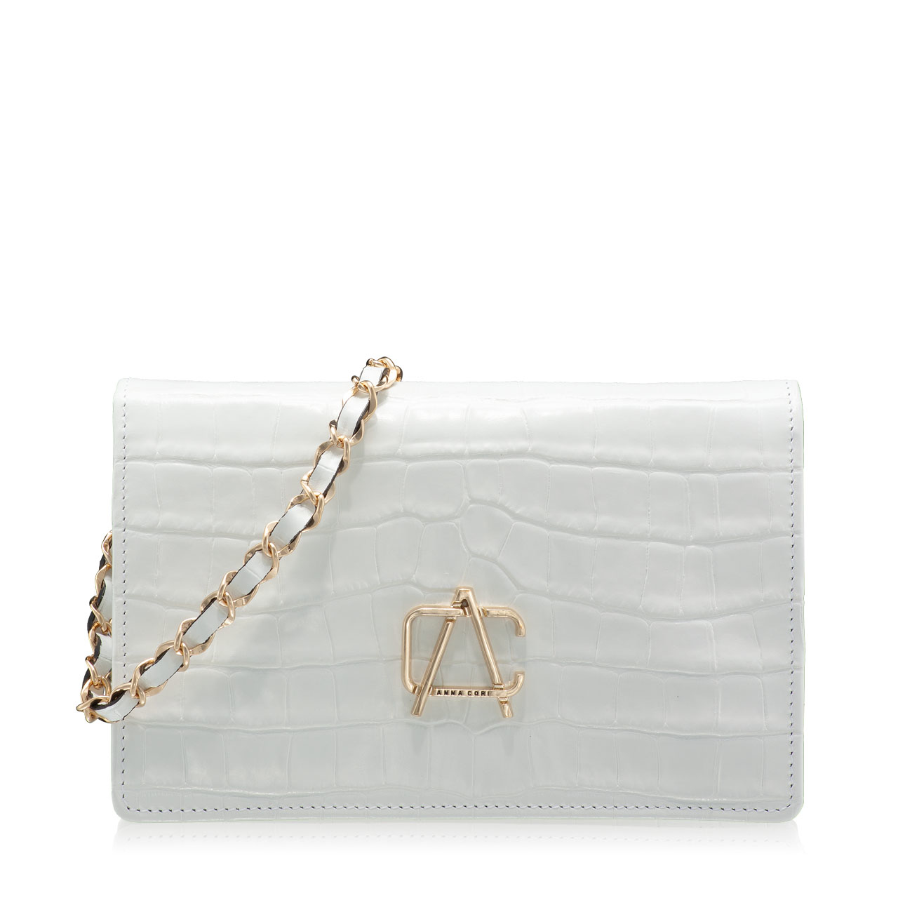 The ARNA envelope bag is an Icon Anna Cori model thanks to the elegance it shows and the diversity of shades in which it is found. It is complexly compartmentalized with two compartments, a central zippered pocket and 6 card holders. The Anna Cori monogram in gold metal manages to add an extra touch of elegance.