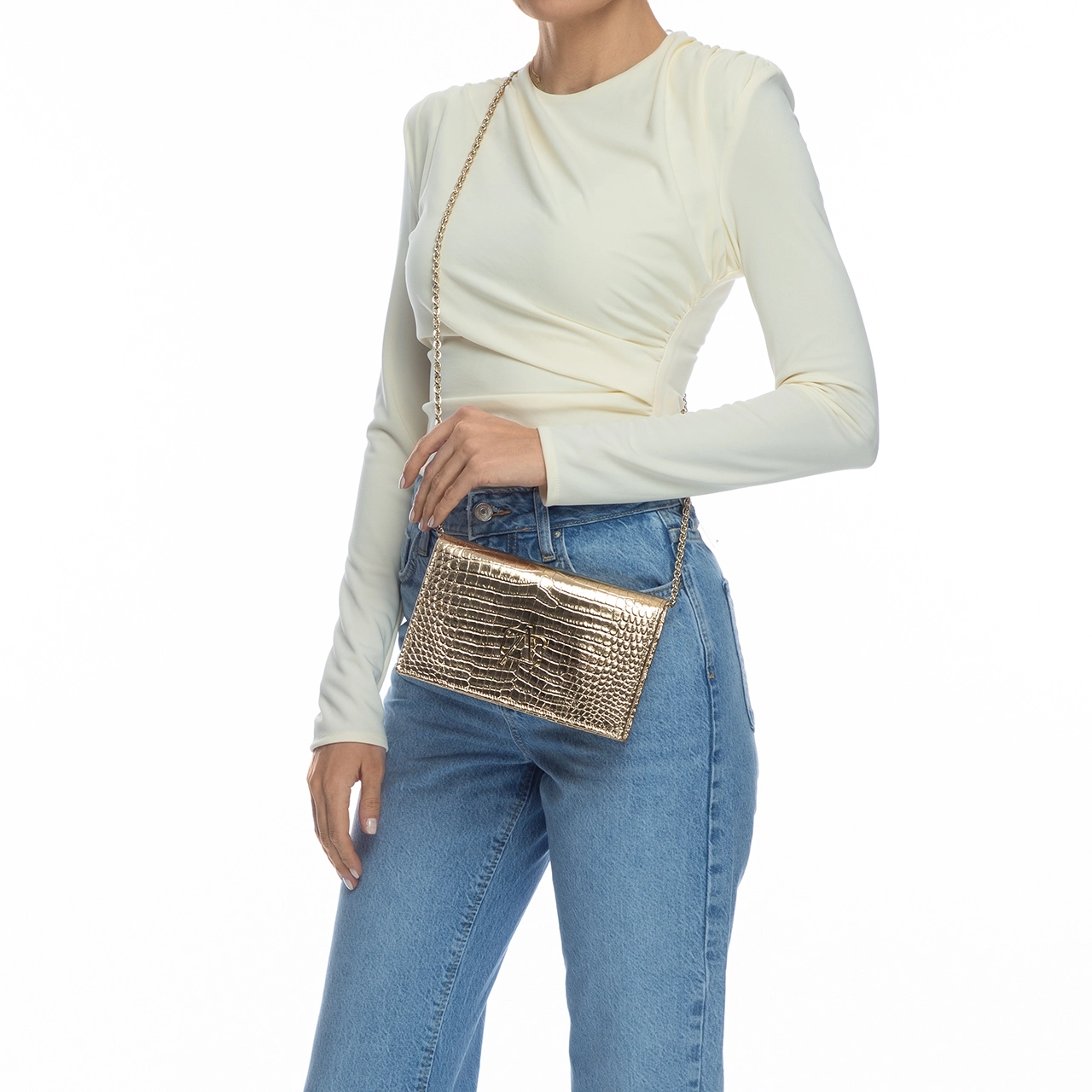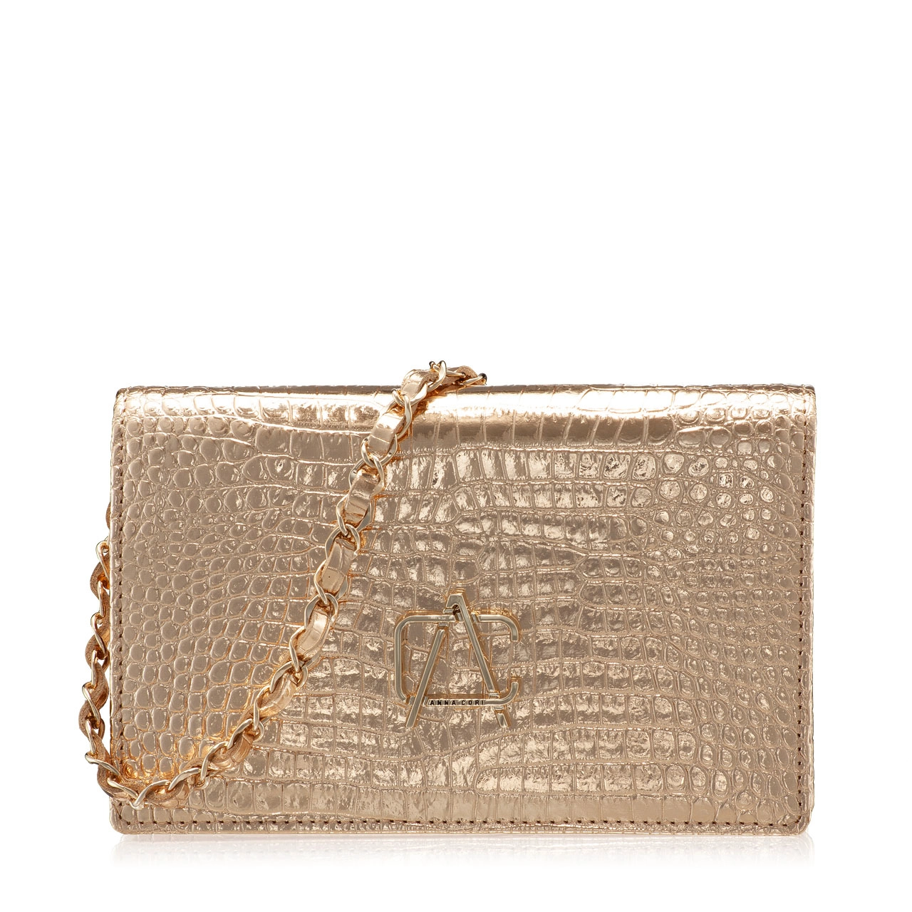 The ARNA envelope bag is an Icon Anna Cori model thanks to the elegance it shows and the diversity of shades in which it is found. It is complexly compartmentalized with two compartments, a central zippered pocket and 6 card holders. The Anna Cori monogram in gold metal manages to add an extra touch of elegance.