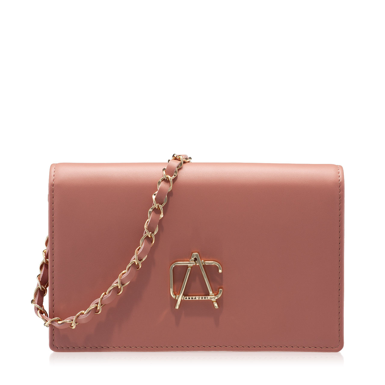 The ARNA envelope bag is an Icon Anna Cori model thanks to the elegance it shows and the diversity of shades in which it is found. It is complexly compartmentalized with two compartments, a central zippered pocket and 6 card holders. The Anna Cori monogram in gold metal manages to add an extra touch of elegance.