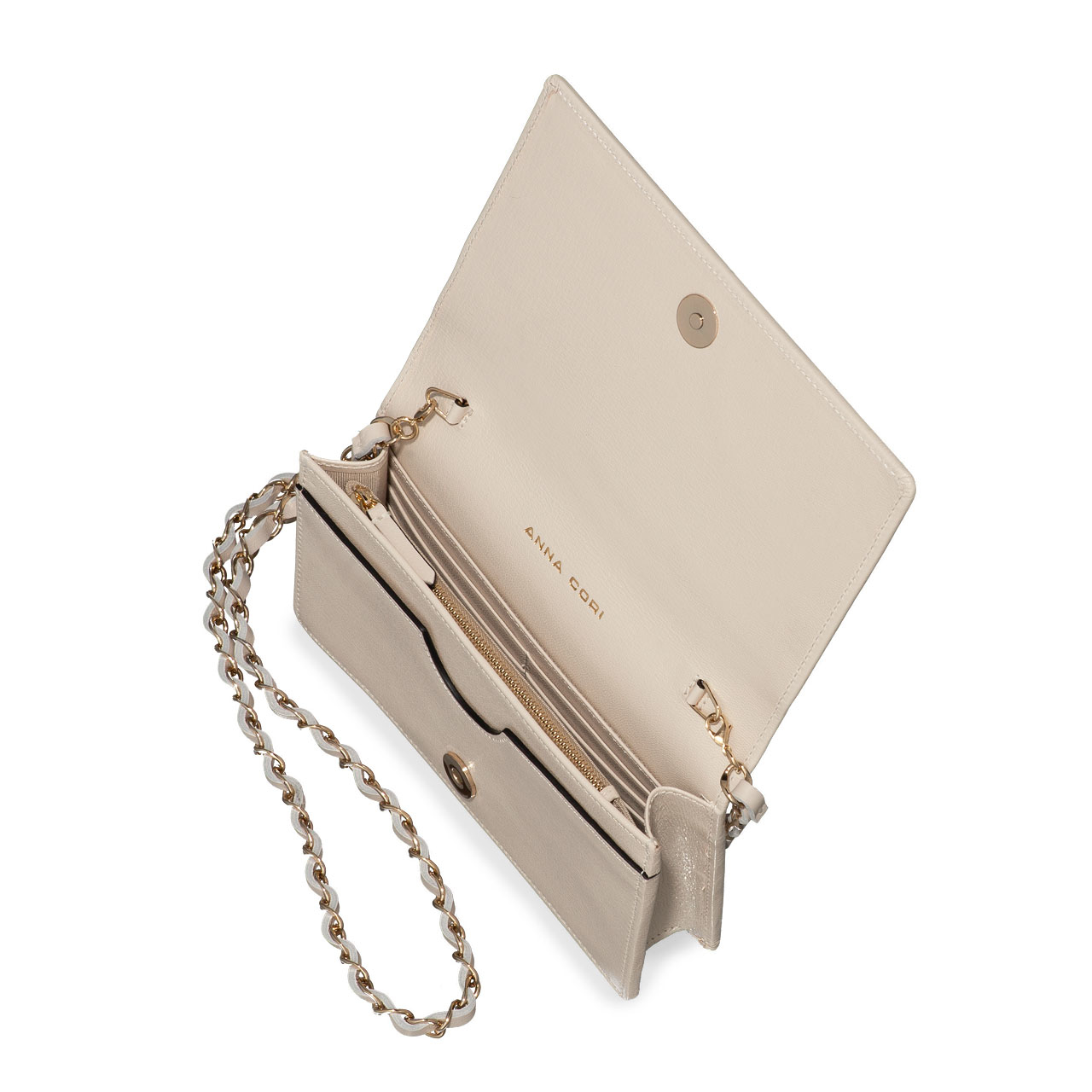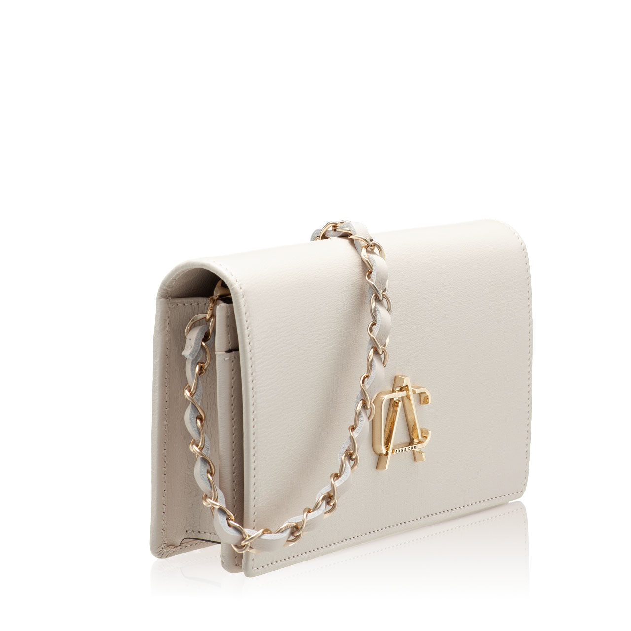The ARNA envelope bag is an Icon Anna Cori model thanks to the elegance it shows and the diversity of shades in which it is found. It is complexly compartmentalized with two compartments, a central zippered pocket and 6 card holders. The Anna Cori monogram in gold metal manages to add an extra touch of elegance.