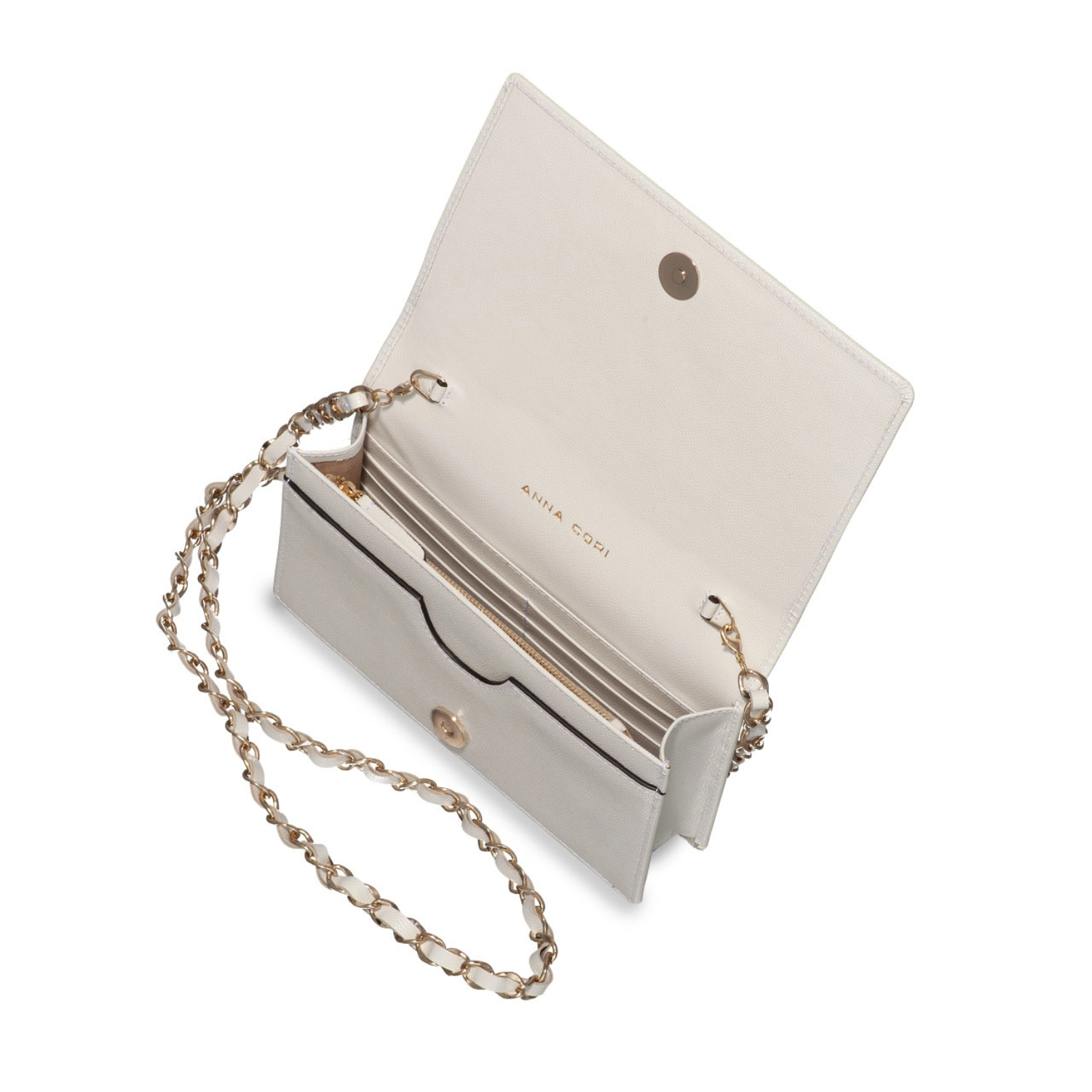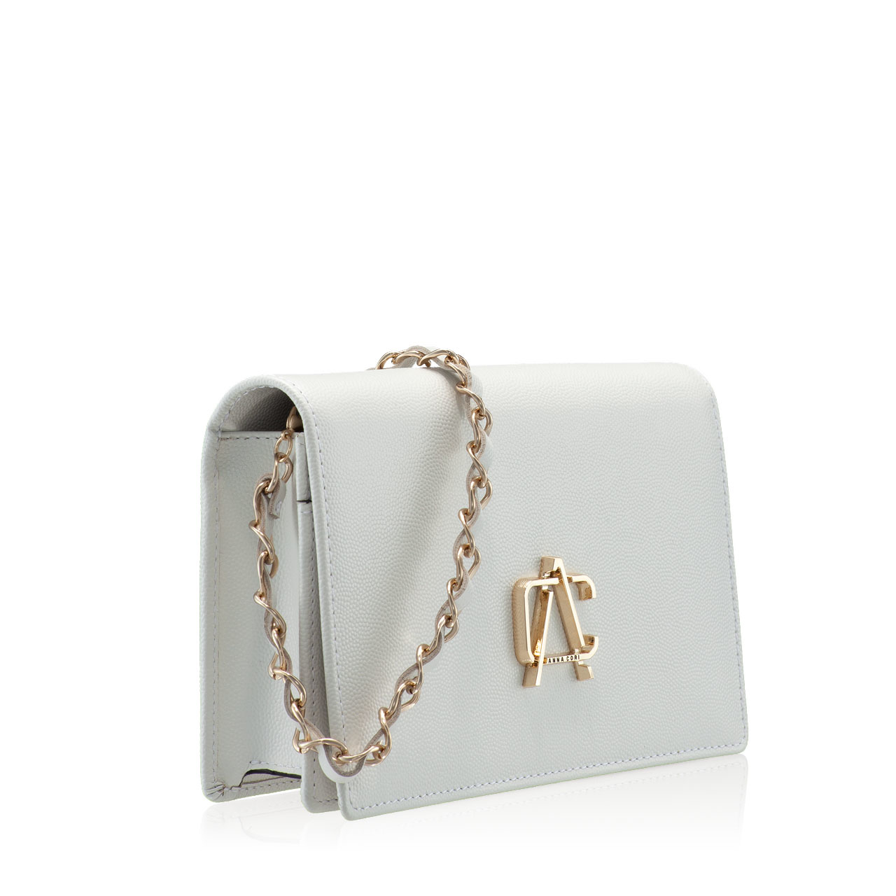 The #ARNA envelope bag is an Icon Anna Cori model for its elegance and the diversity of shades in which it is found. It is complexly compartmentalized with one compartment, a central zippered pocket and 6 card slots. The Anna Cori monogram in gold metal adds an extra touch of elegance.