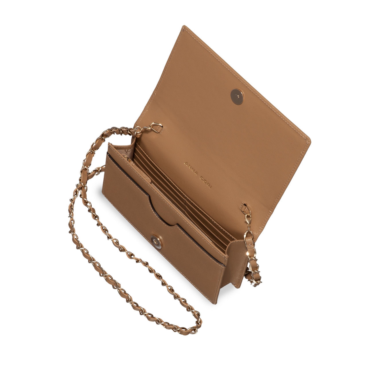 The ARNA envelope bag is an Icon Anna Cori model thanks to the elegance it shows and the diversity of shades in which it is found. It is complexly compartmentalized with two compartments, a central zippered pocket and 6 card holders. The Anna Cori monogram in gold metal manages to add an extra touch of elegance.