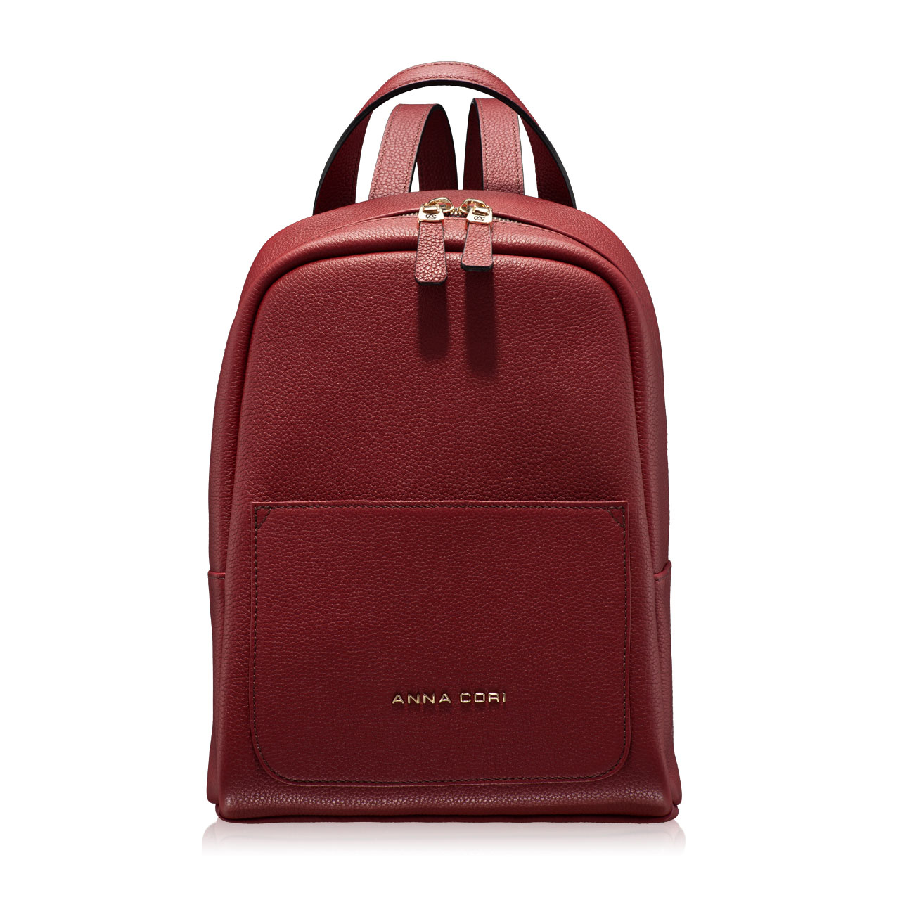 -natural leather-one compartment-one interior pocket-one exterior pocket-top handle-zipper closure-Anna Cori logo-personalised accessories-adjustable shoulder strap