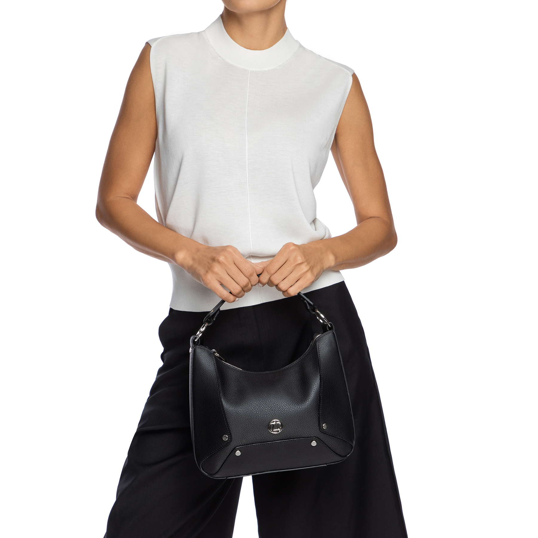 The Fedra bag has a timeless design due to its unique pattern made of metal staples and its rounded shape. Featuring a detachable and adjustable strap, this bag can be worn over the shoulder or across the body. It's a compact bag, but at the same time big enough to carry all your essentials with you.