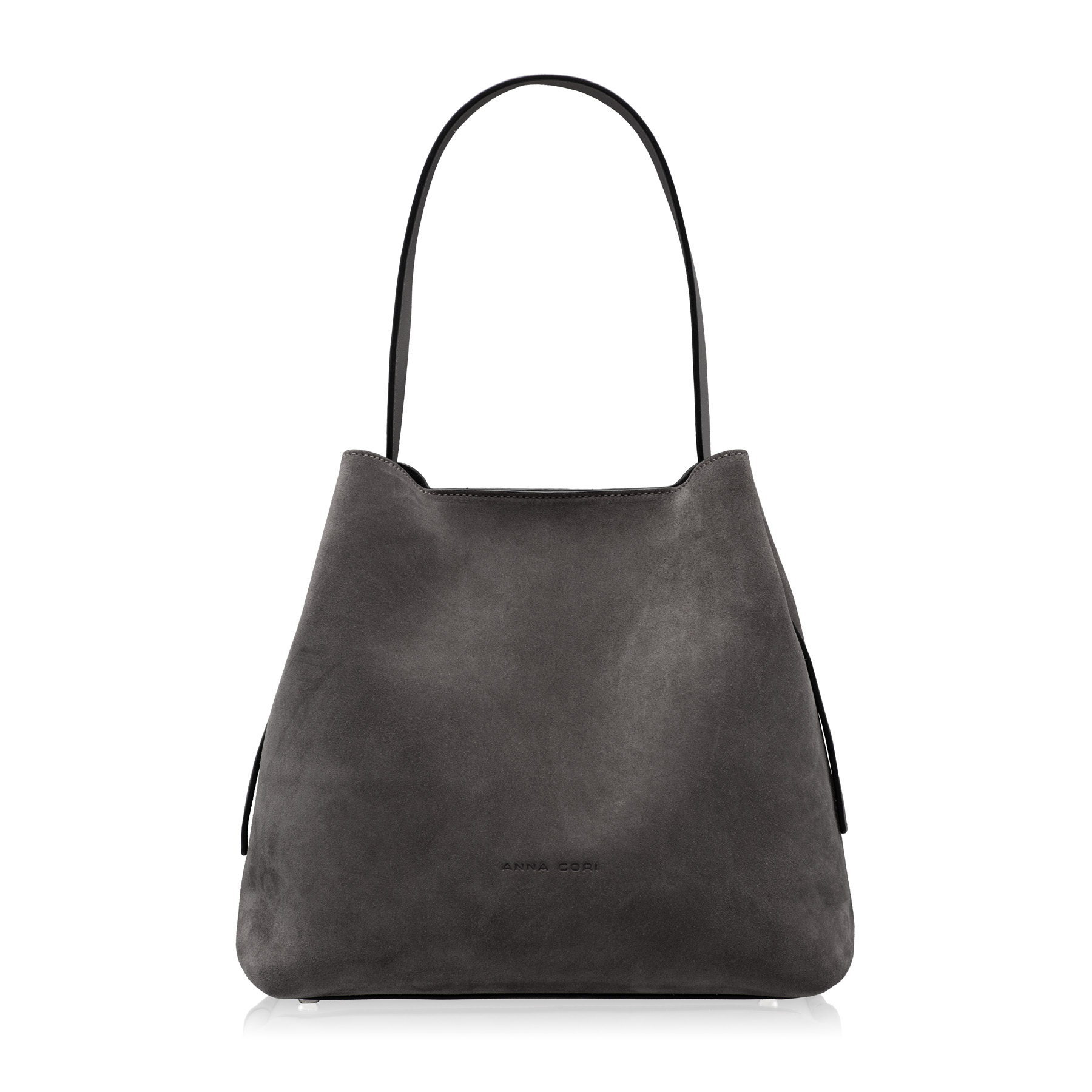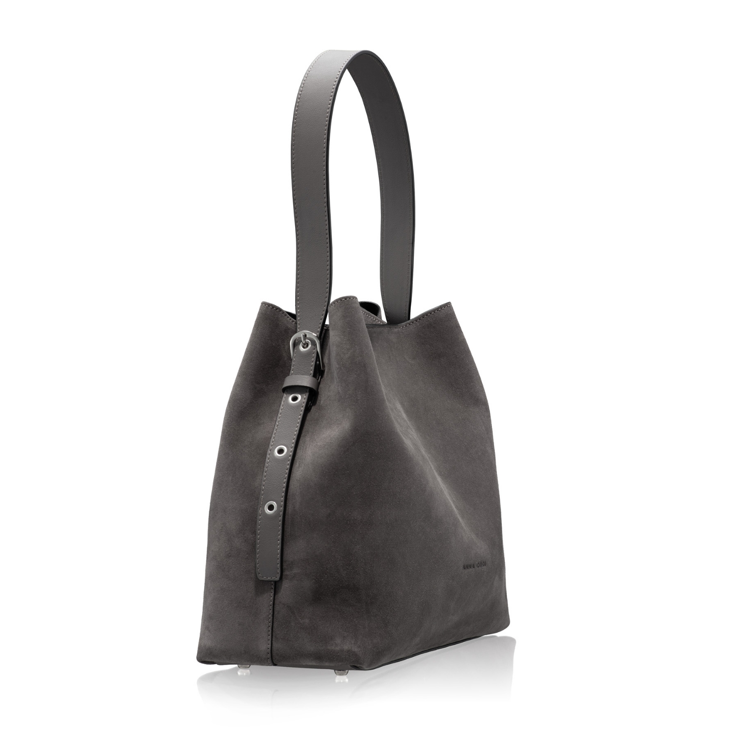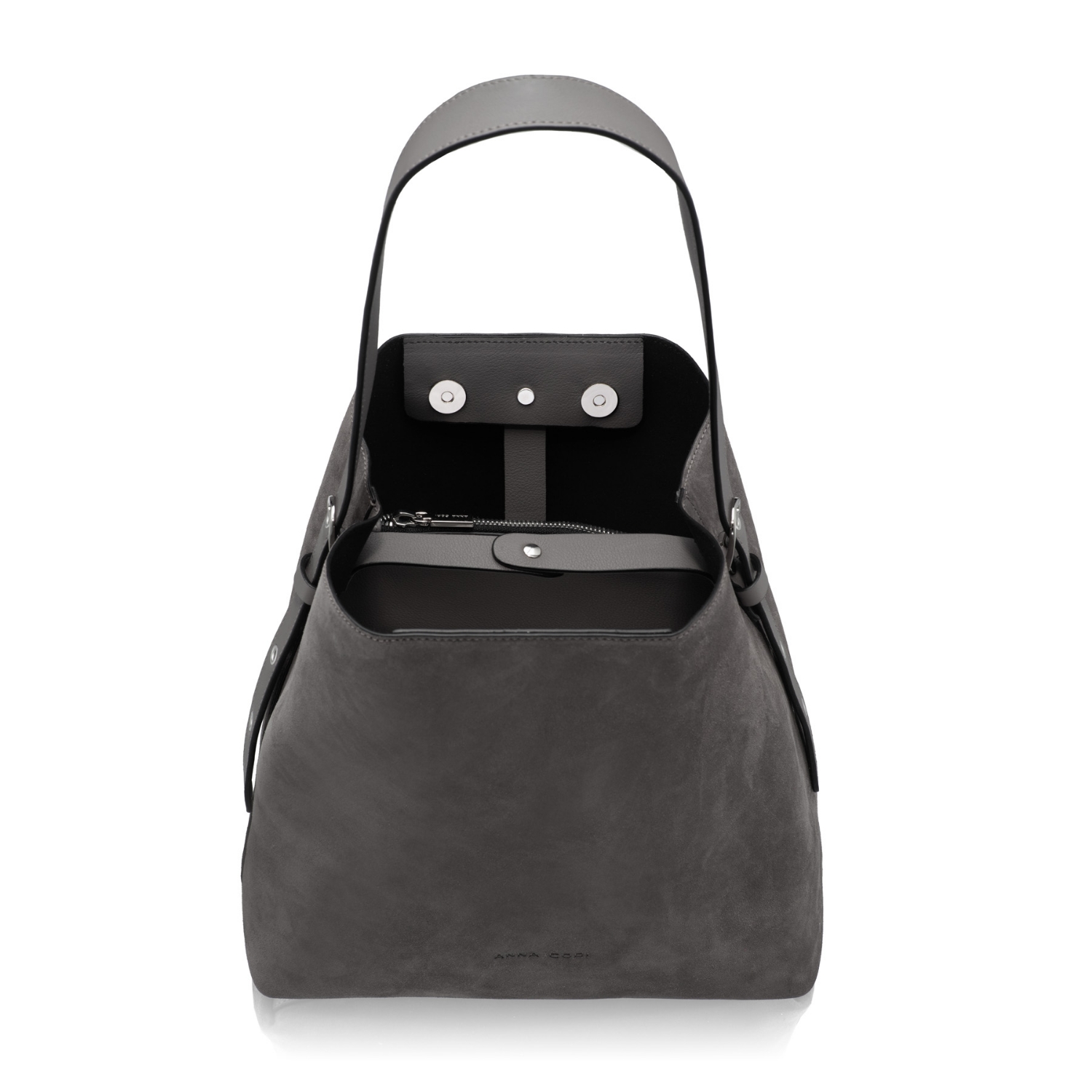 -natural leather-leather lining-one large compartment -one interior zipper pocket-magnetic staple closure-adjustable shoulder strap-personalised accessory with Anna Cori logo