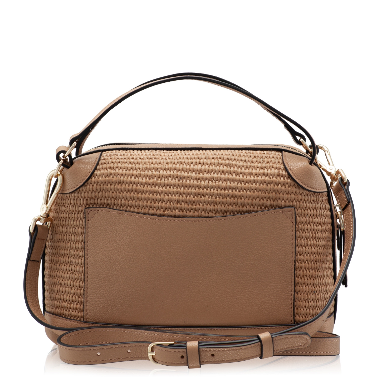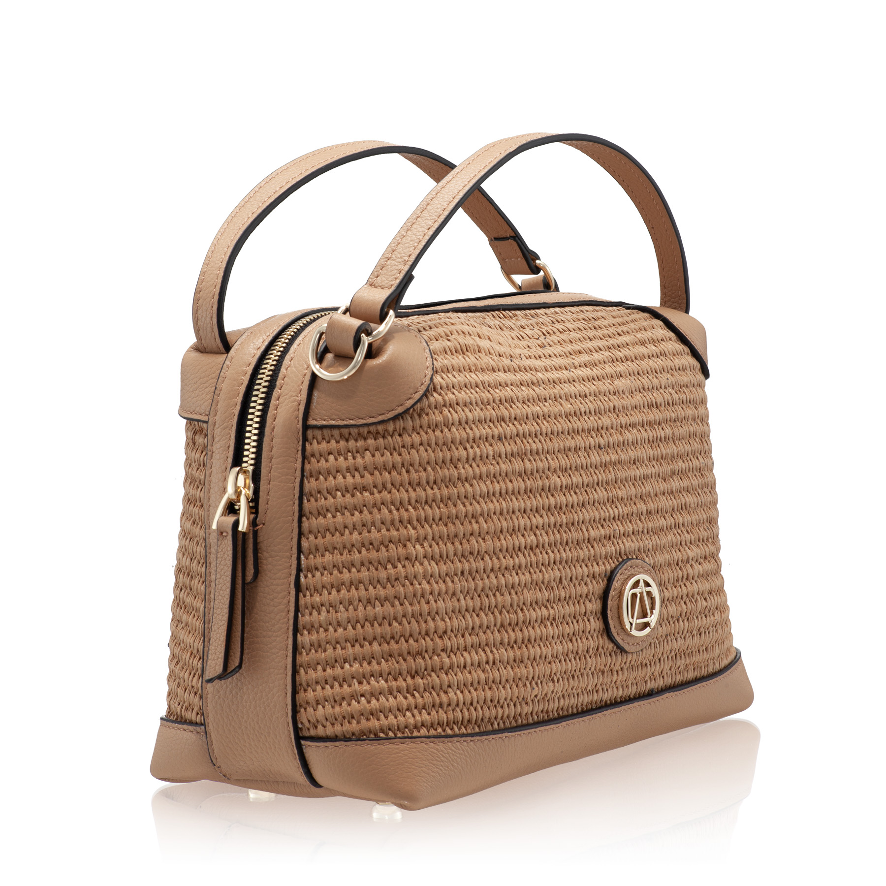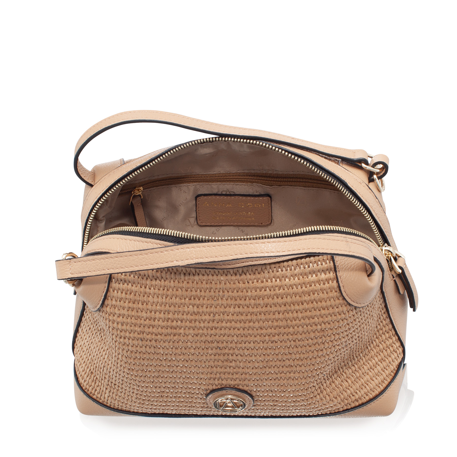 Its compact yet spacious shape makes it the perfect companion for busy city days, weekend getaways, or summer outings with friends. The secure closure system, delicate metallic details, and premium finish reflect the unmistakable Anna Cori quality and timeless style. Ideal for chic summer looks, smart-casual outfits, or relaxed office wear.