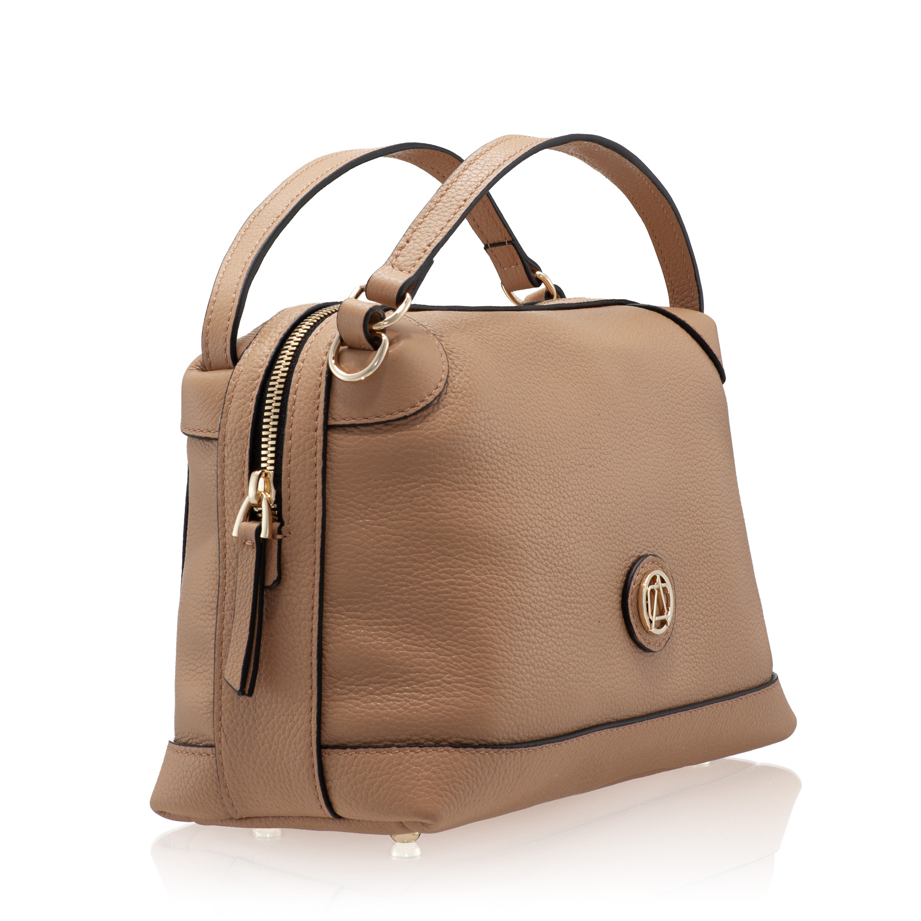 Its compact yet spacious shape makes it the perfect companion for busy city days, weekend getaways, or summer outings with friends. The secure closure system, delicate metallic details, and premium finish reflect the unmistakable Anna Cori quality and timeless style. Ideal for chic summer looks, smart-casual outfits, or relaxed office wear.