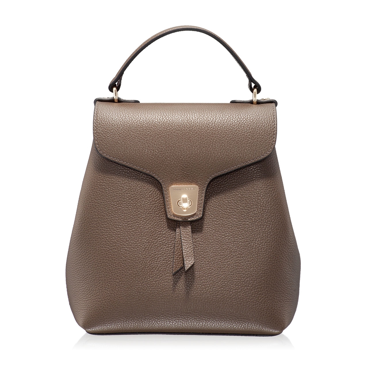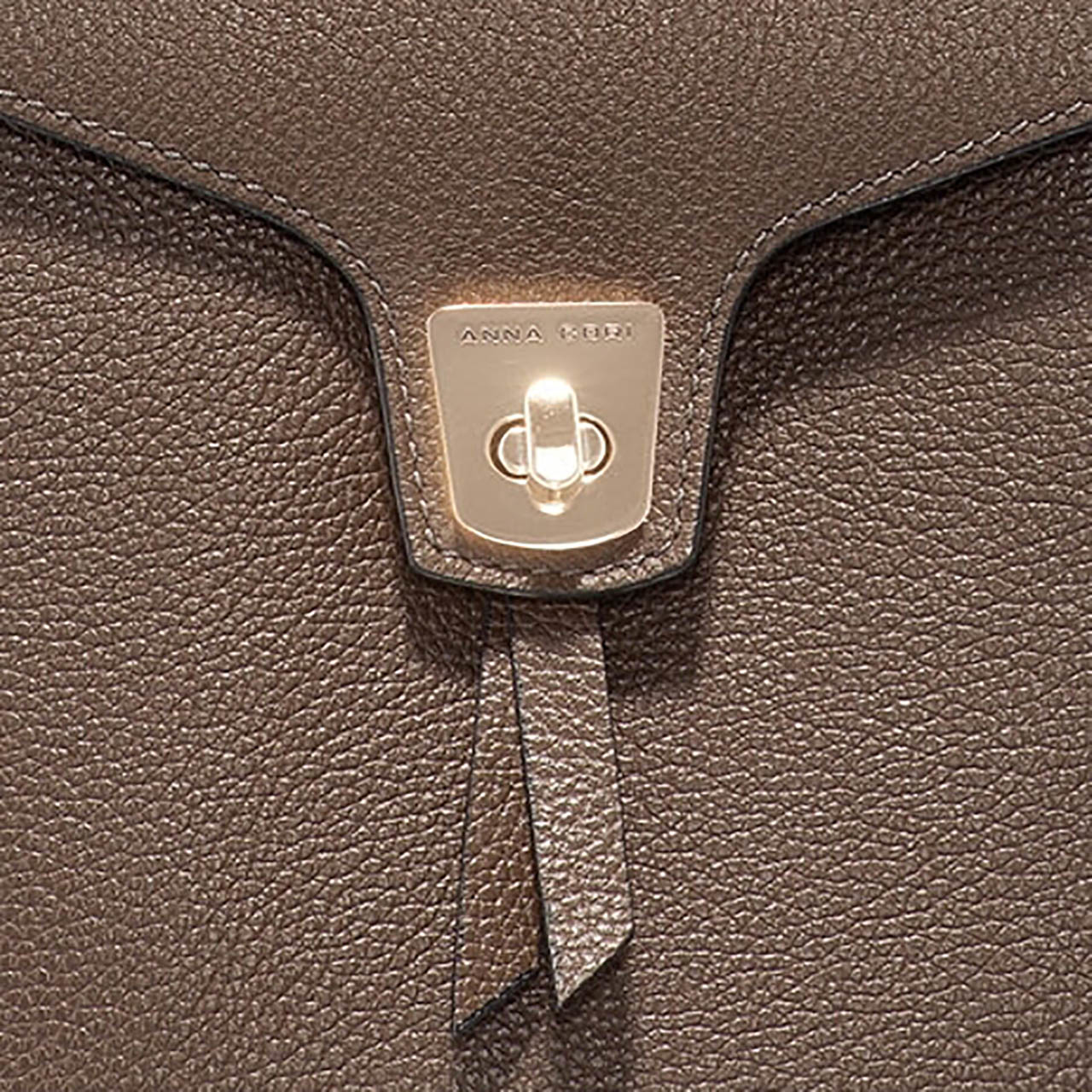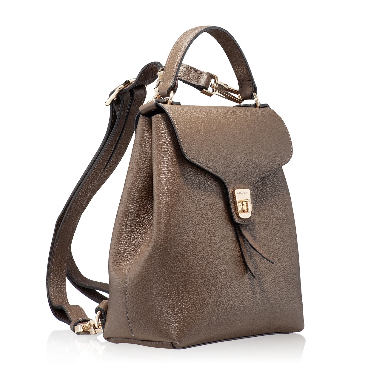 -natural leather-one interior compartment-one interior zipper pocket-top handle-engraved ANNA CORI monogram-adjustable and detachable shoulder strap
