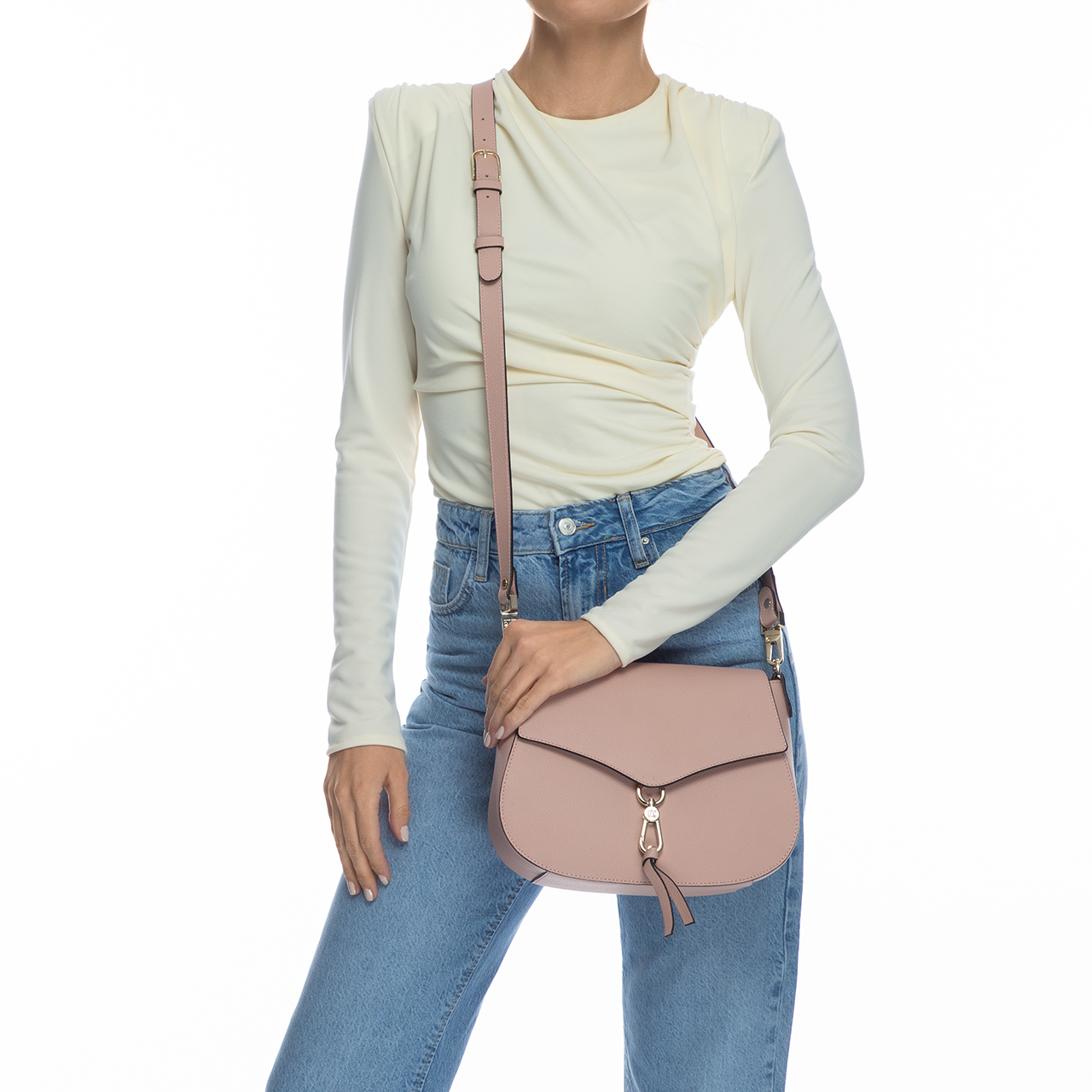 -natural leather-one compartment-one interior pocket-one exterior zipper pocket-personalised accessory-magnet closure-adjustable shoulder strap