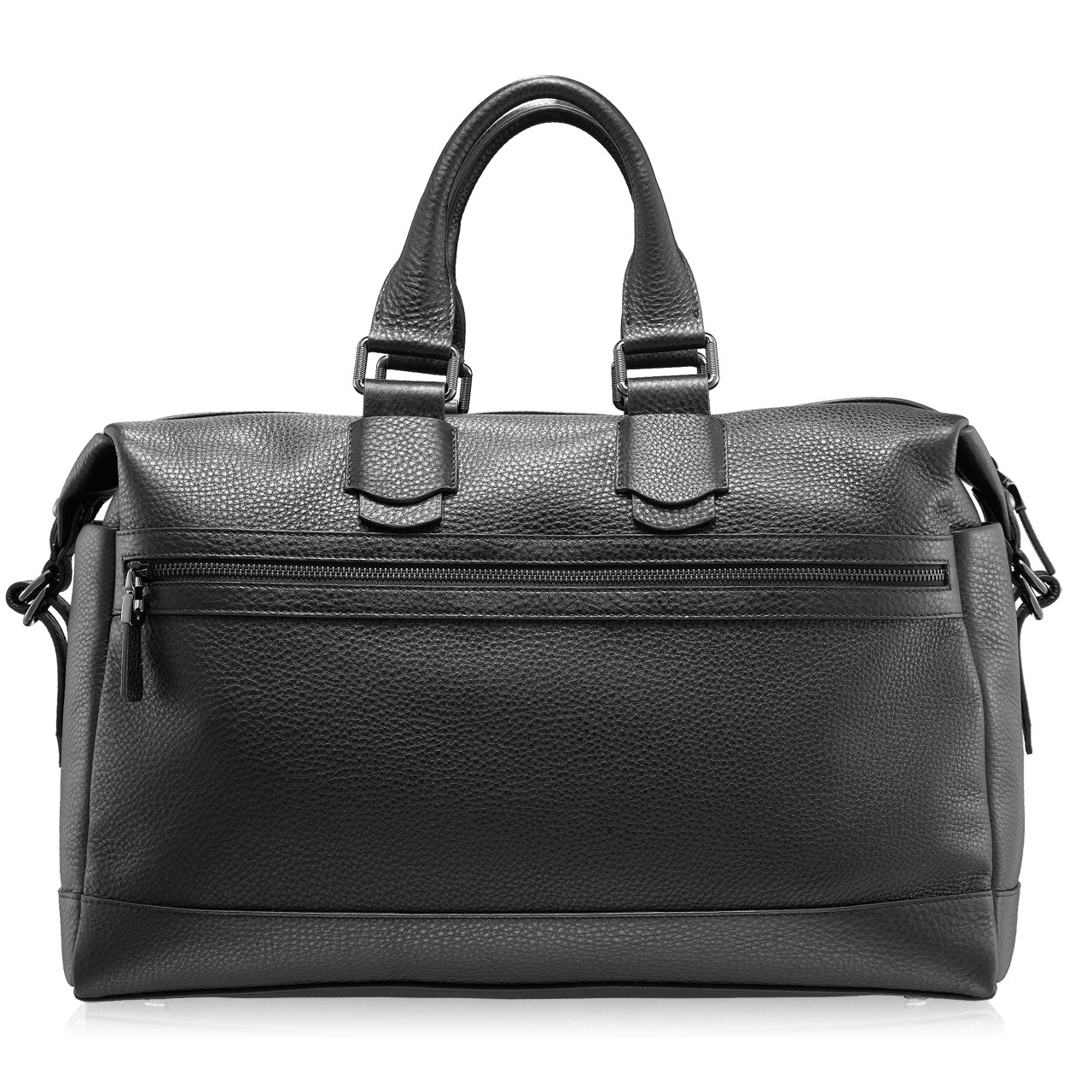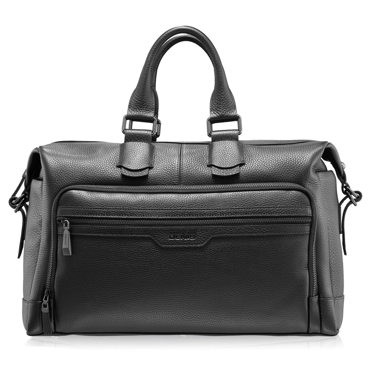 -natural leather-fabric lining-one interior compartment-two interior zipper pockets-one interior pocket-three exterior zipper pockets-two exterior pockets-zipper closure-detachable and adjustable shoulder strap-engraved DENIS logo