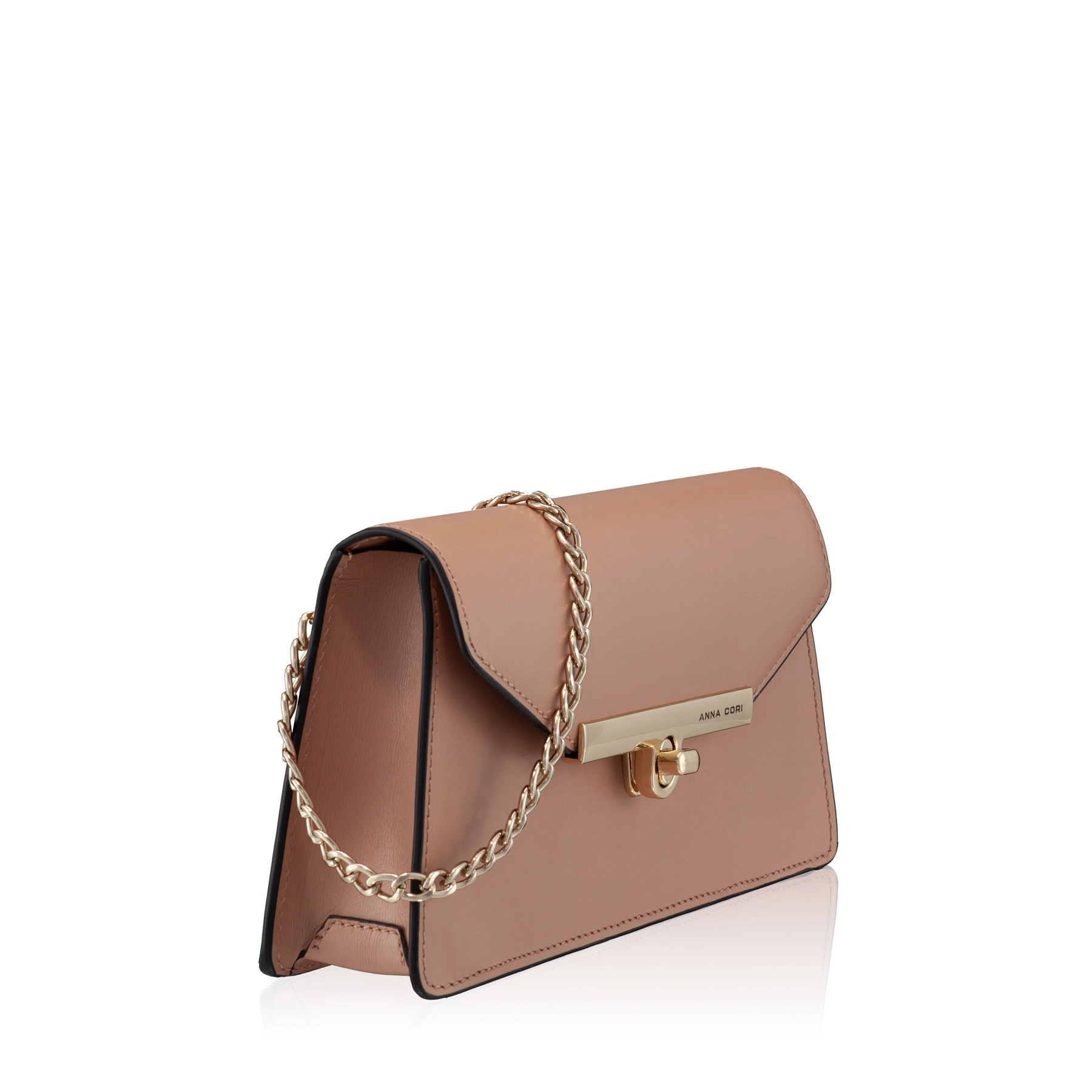 The CASEY 01 bag has a feminine and elegant allure, it is small in size and comes in a multitude of special colors, these aspects making it an Icon Anna Cori model. The metallic shoulder chain gives this bag extra sparkle and makes it the perfect companion for special occasions. It is personalized with the Anna Cori logo and has an easy closure.