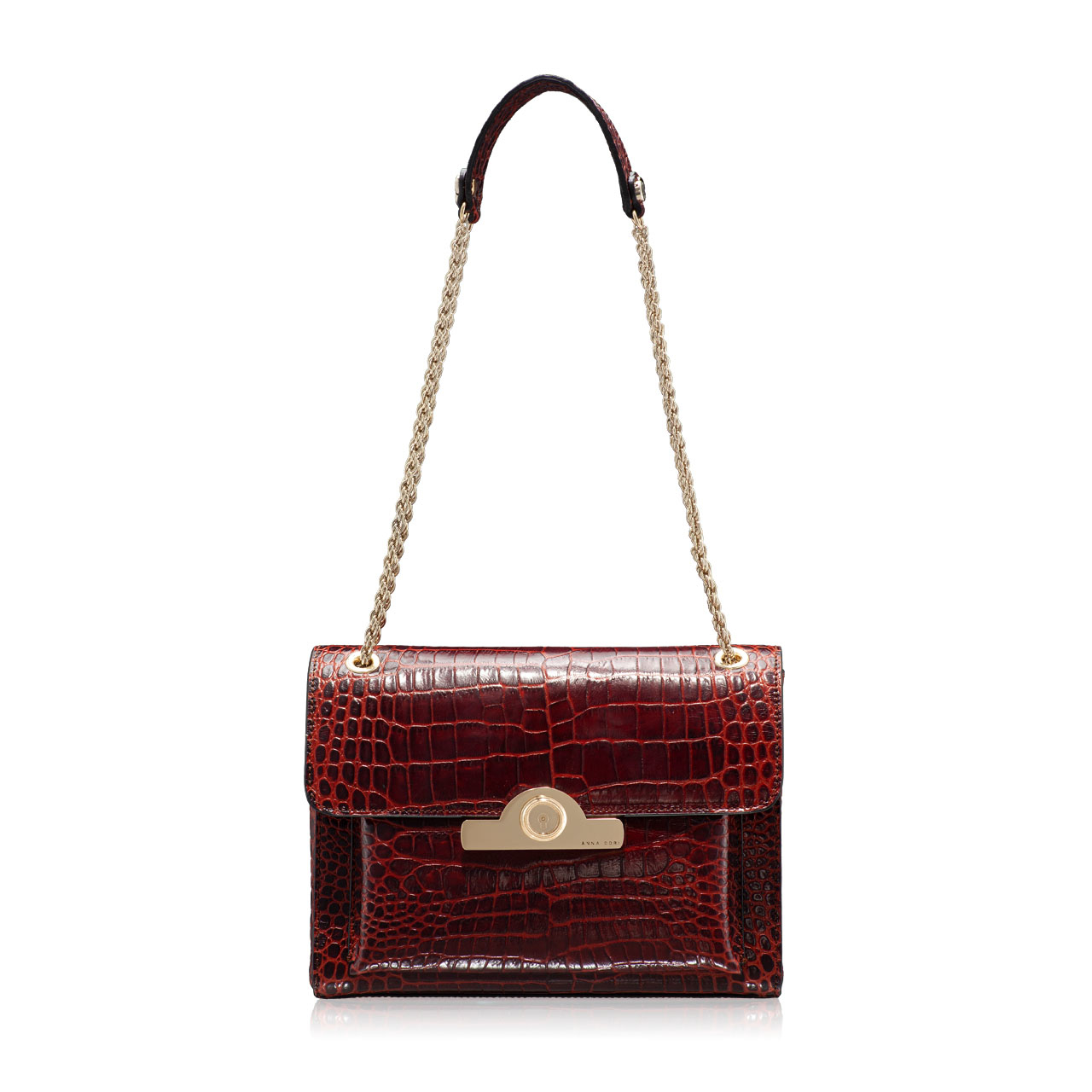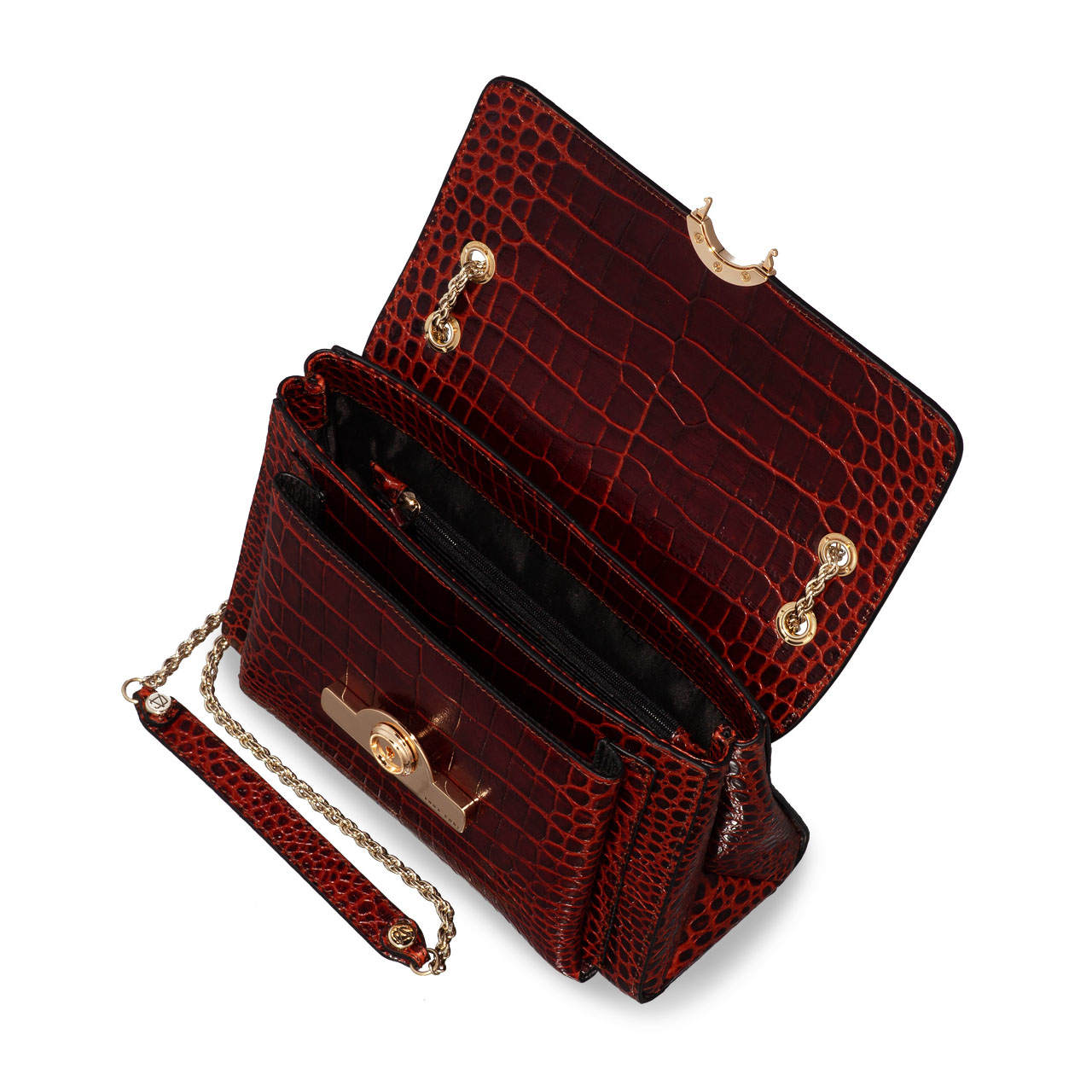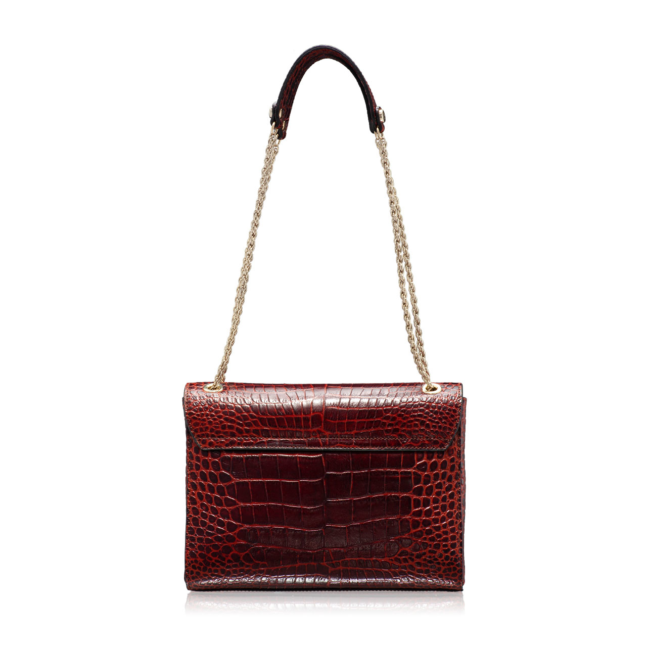 -croco leather-two interior compartments-two interior zipper pockets-personalised accessory-adjustable shoulder strap