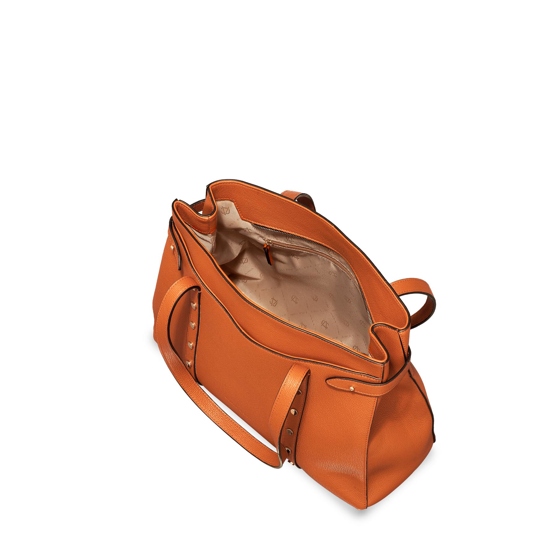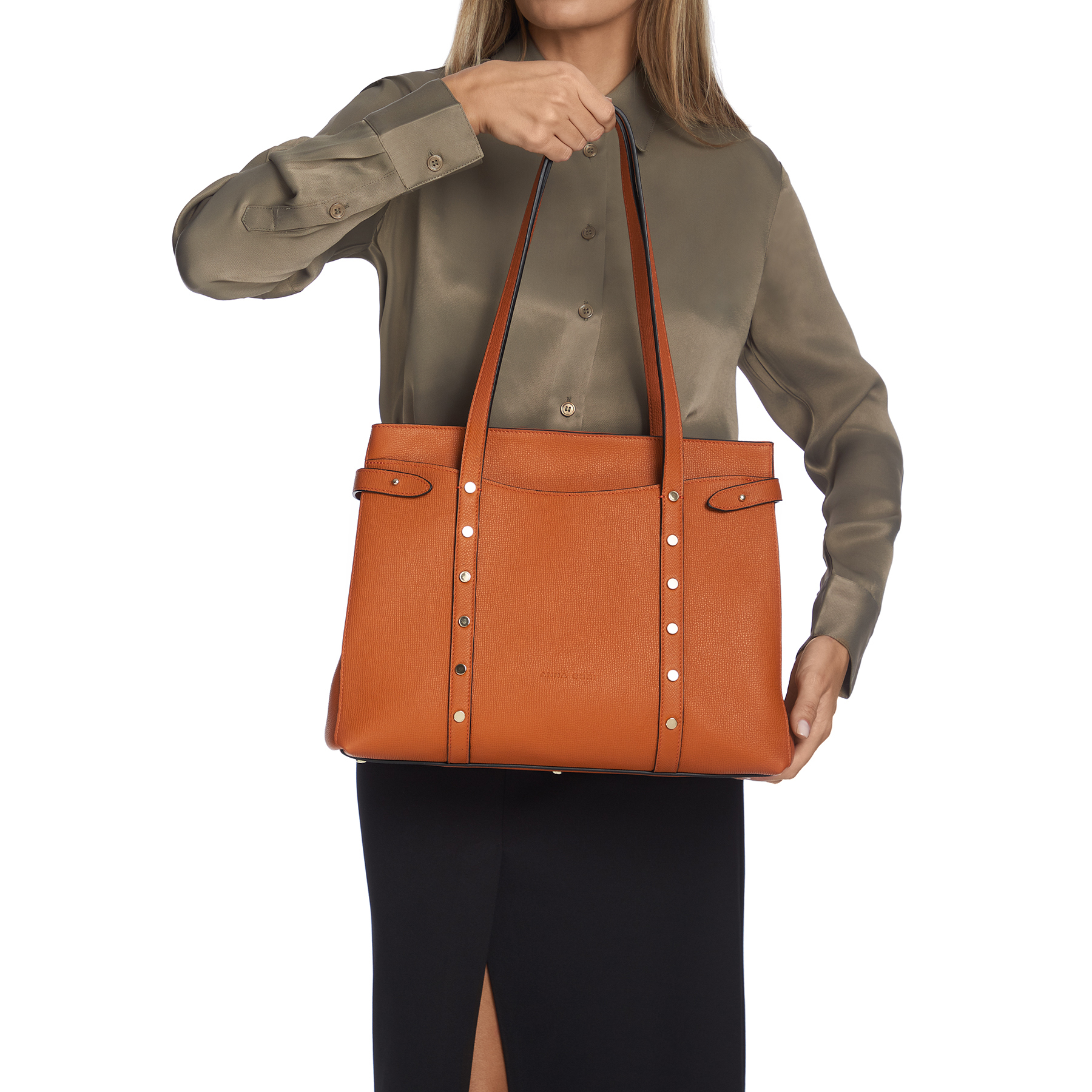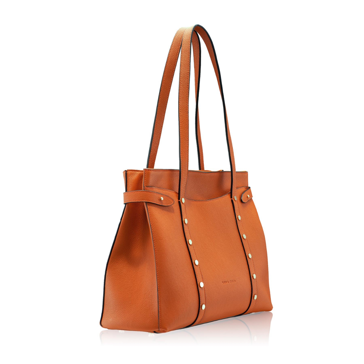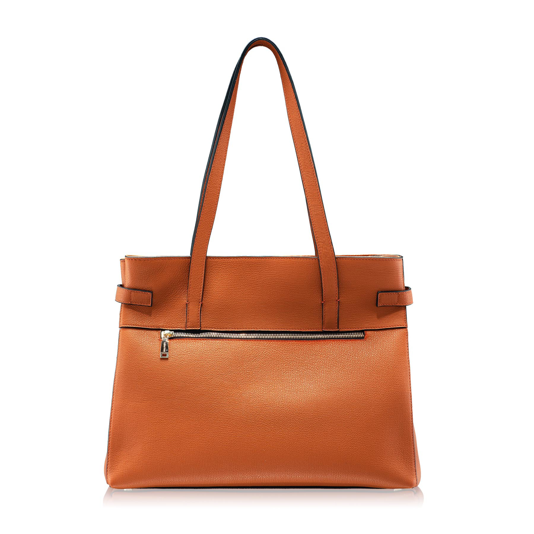 • Exterior: one front pocket with staple and one zipper closure pocket at back