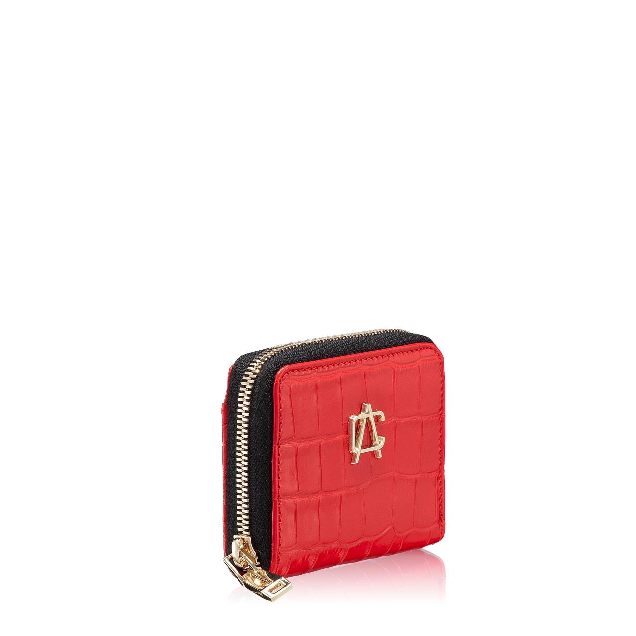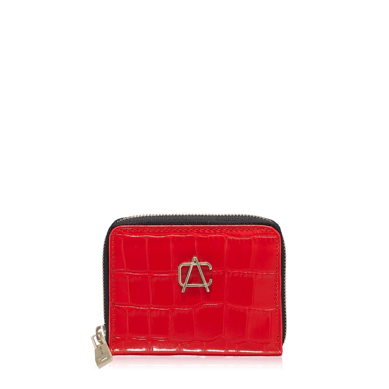 -cocco leather-2 internal compartments-card holder spaces-one internal zipper pocket-zipper closure-Anna Cori monogram accessory